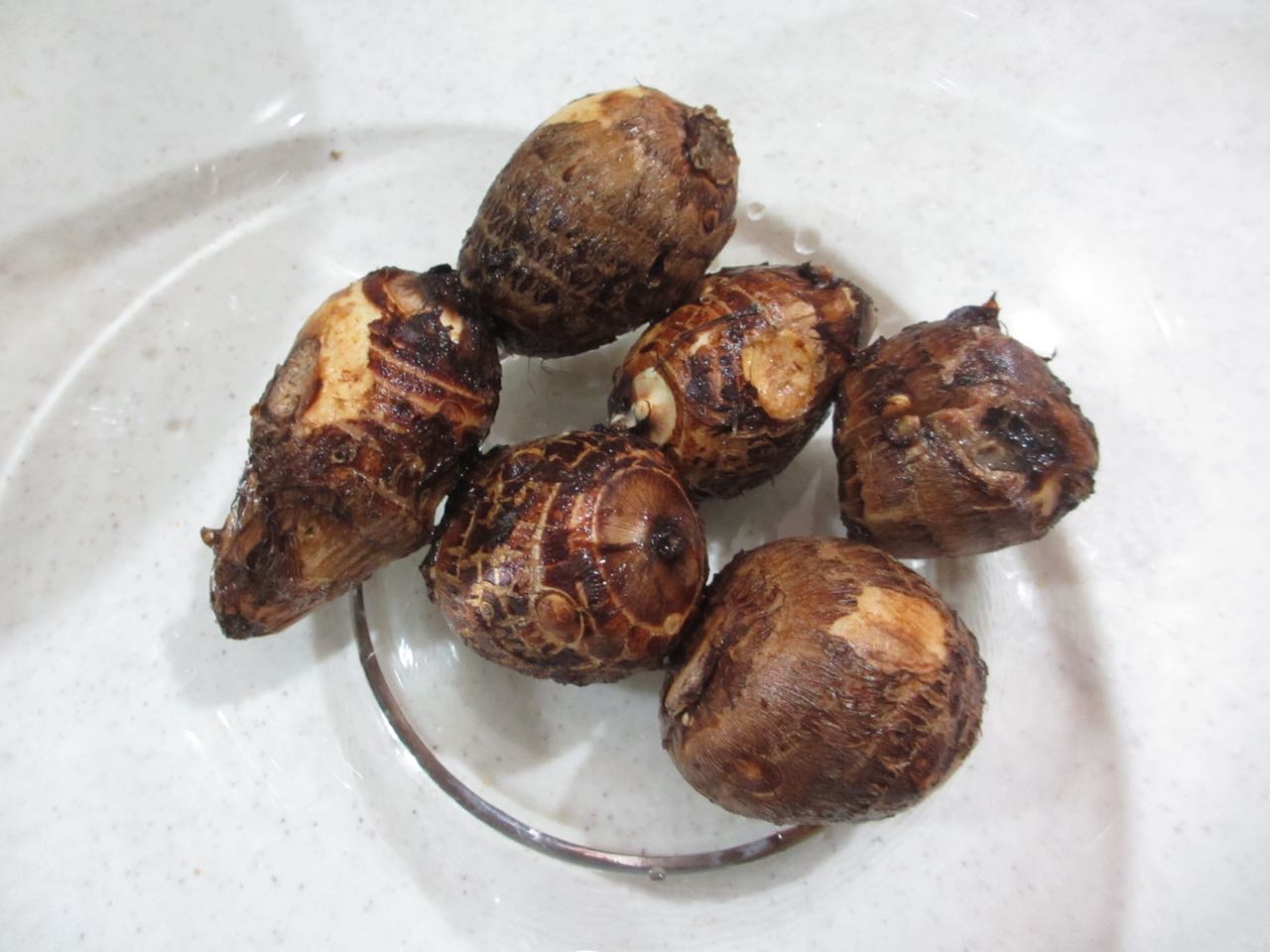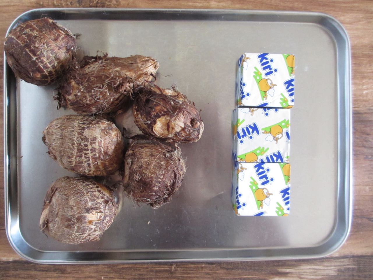 里いもはレンジでチンし、粗熱を取ってから剥くとスルッと剥けます。また時間がない方は、流水に当てて冷ましてもOKです。
