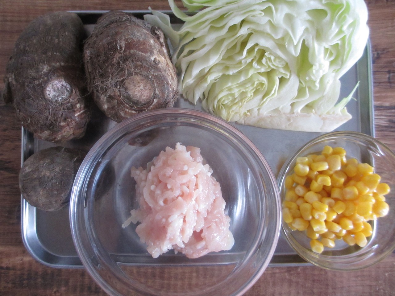 私の勝手なイメージなのですが、里いもって、どうしてもイコール煮物という印象がとっても強いですよね。確かに、煮物にしても美味しいのですが、それだけだと飽きちゃうし、何より中途半端に里いもが残った時なんて、どう処理していいか悩みますよね。これをこのまま煮物にしても、2人で食べるには少なすぎる・・・みたいな。