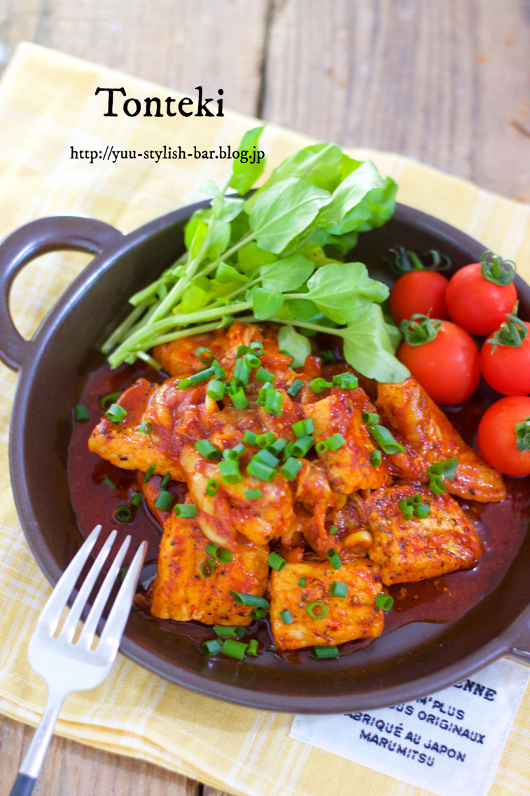 いつものトンテキにキムチを加えて、よりパンチをアップ!これは、彼のご飯もビールも、グイグイすすむこと間違いなしですよ〜。