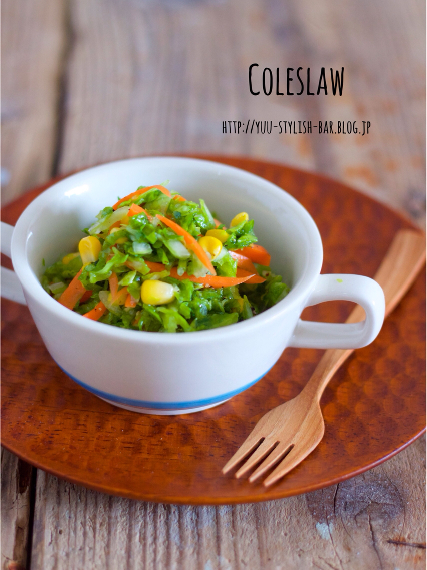 コールスローといえば、マヨネーズで和えるのが定番ですが、今回は春っぽく仕上げたかったので、”ハニーレモン”のドレッシングで和えました。