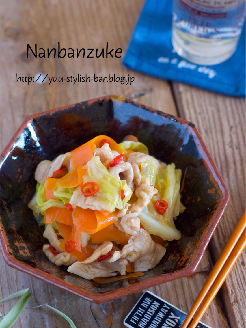豚肉・キャベツ・人参をサッと茹で、あとは、南蛮ダレに漬け込むだけ。