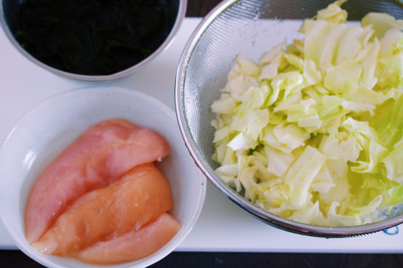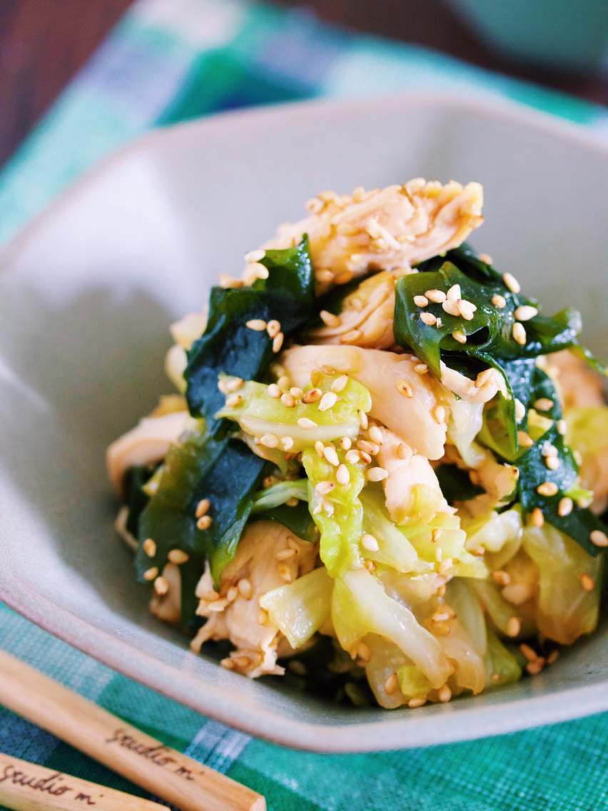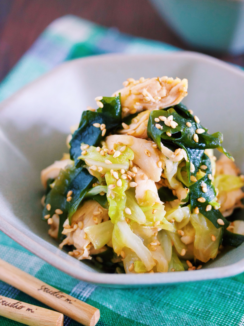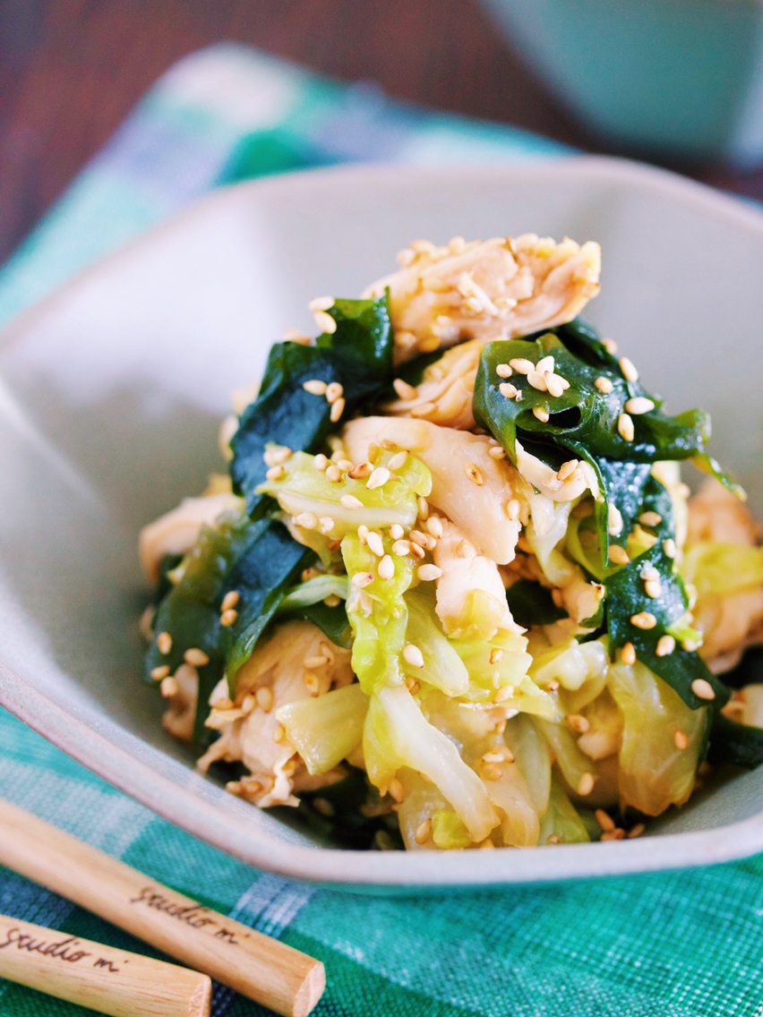 キャベツとわかめを使った