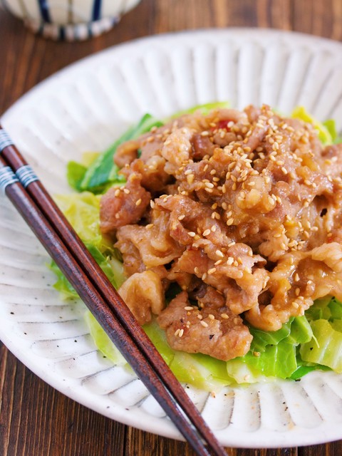 《春キャベツと豚こまのスタミナ味噌炒め》