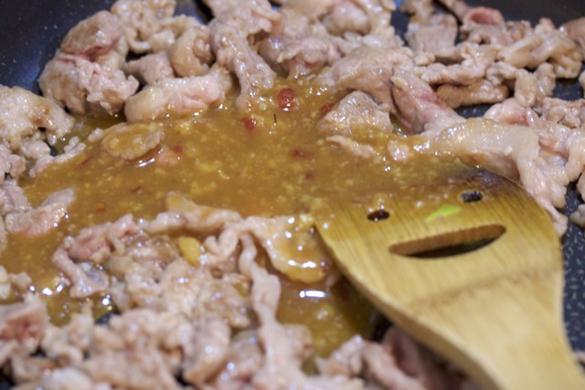 あとは、豚こまを炒めて