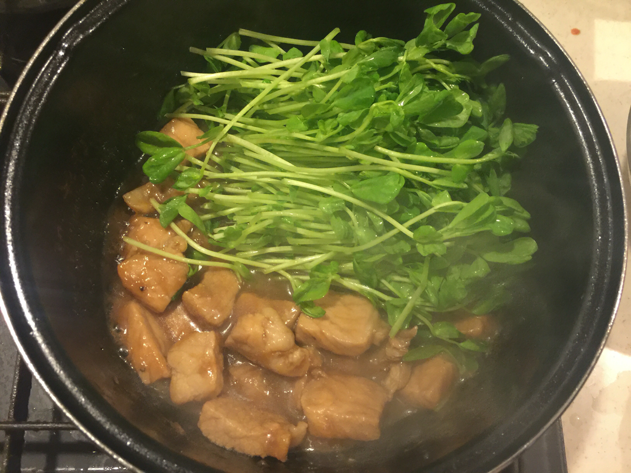 ②弱火で、コトコト煮、餅が柔らかくなったら出来上がり。