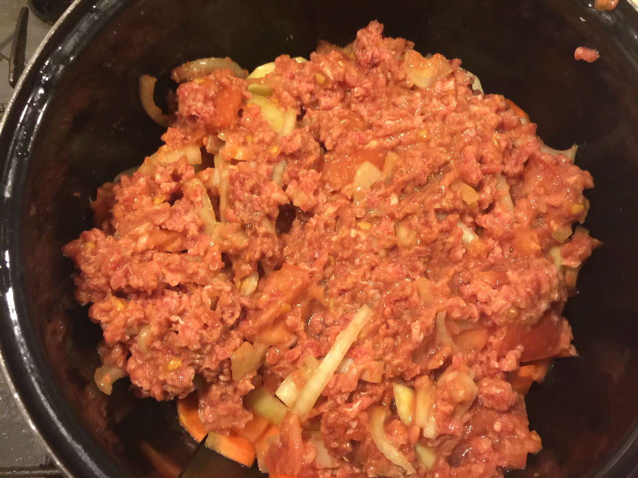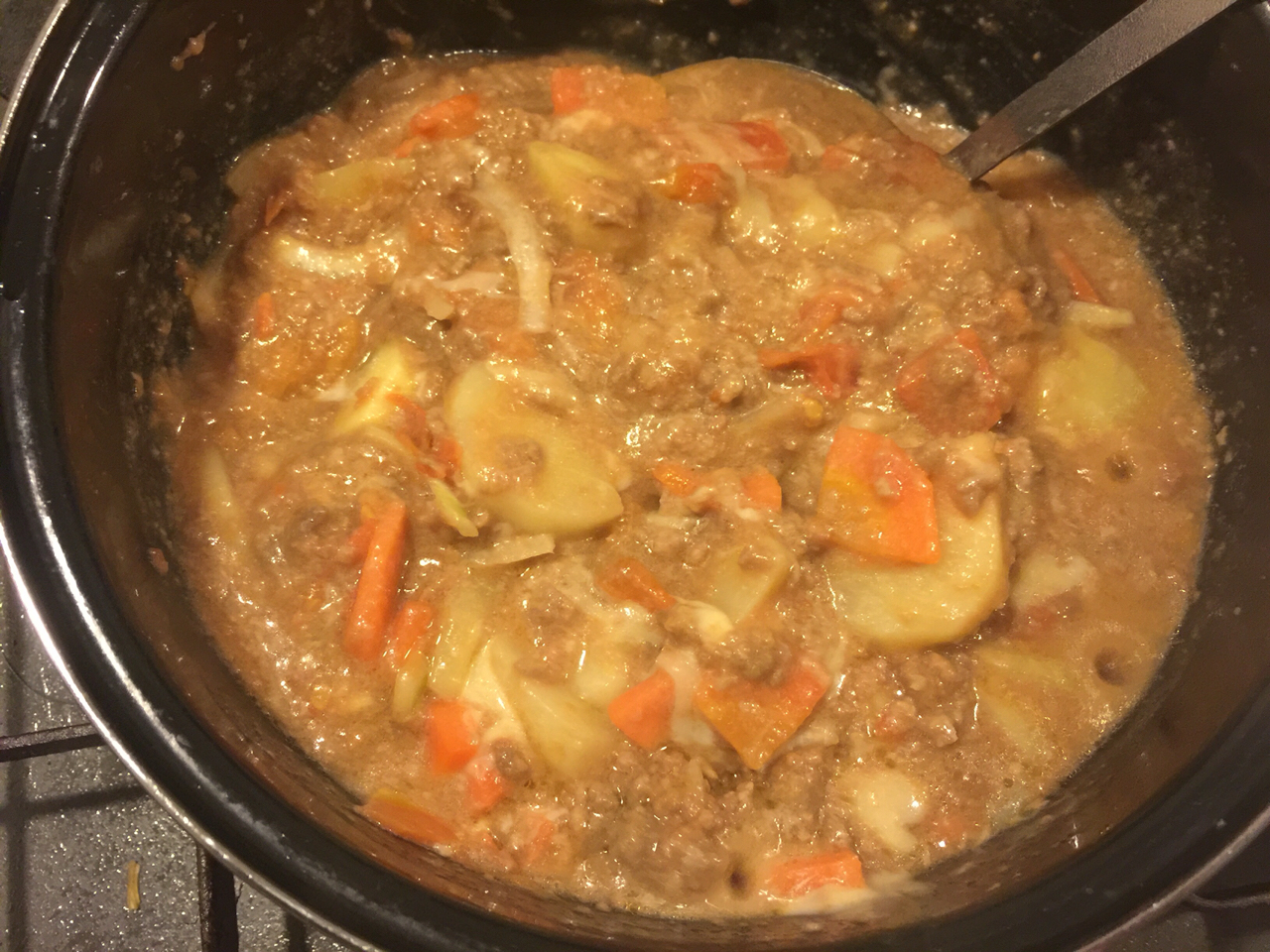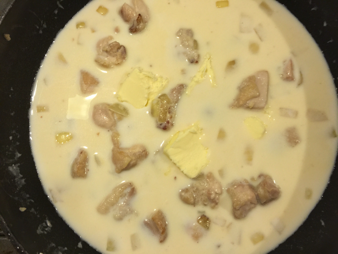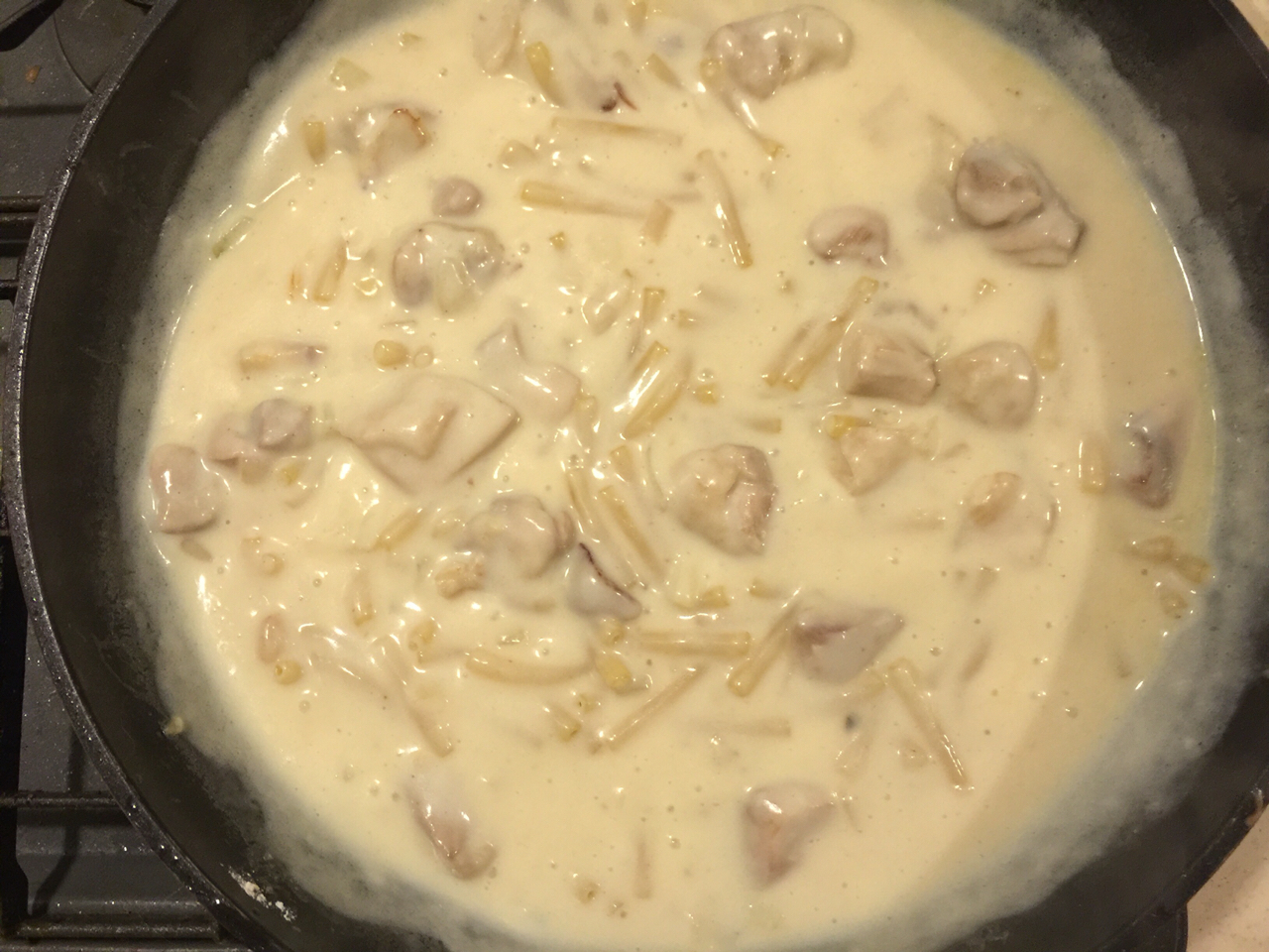 ③牛乳を少しずつ加え、ダマにならないように、その都度、よく混ぜ合わせる。牛乳を入れ終わったら、①の蒸し汁も加えて、再度よく混ぜ合わせる。