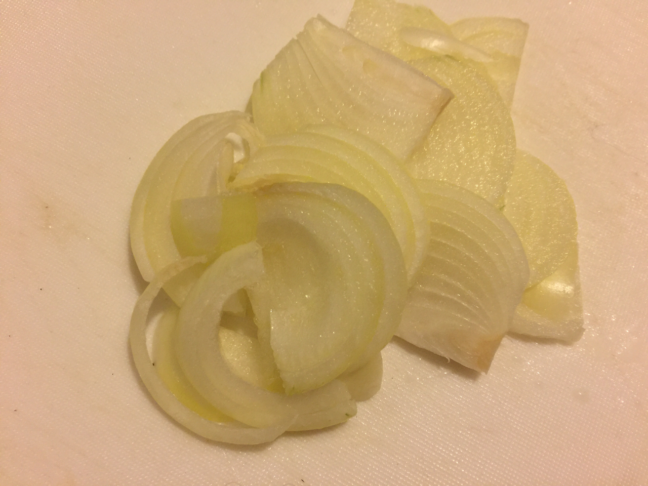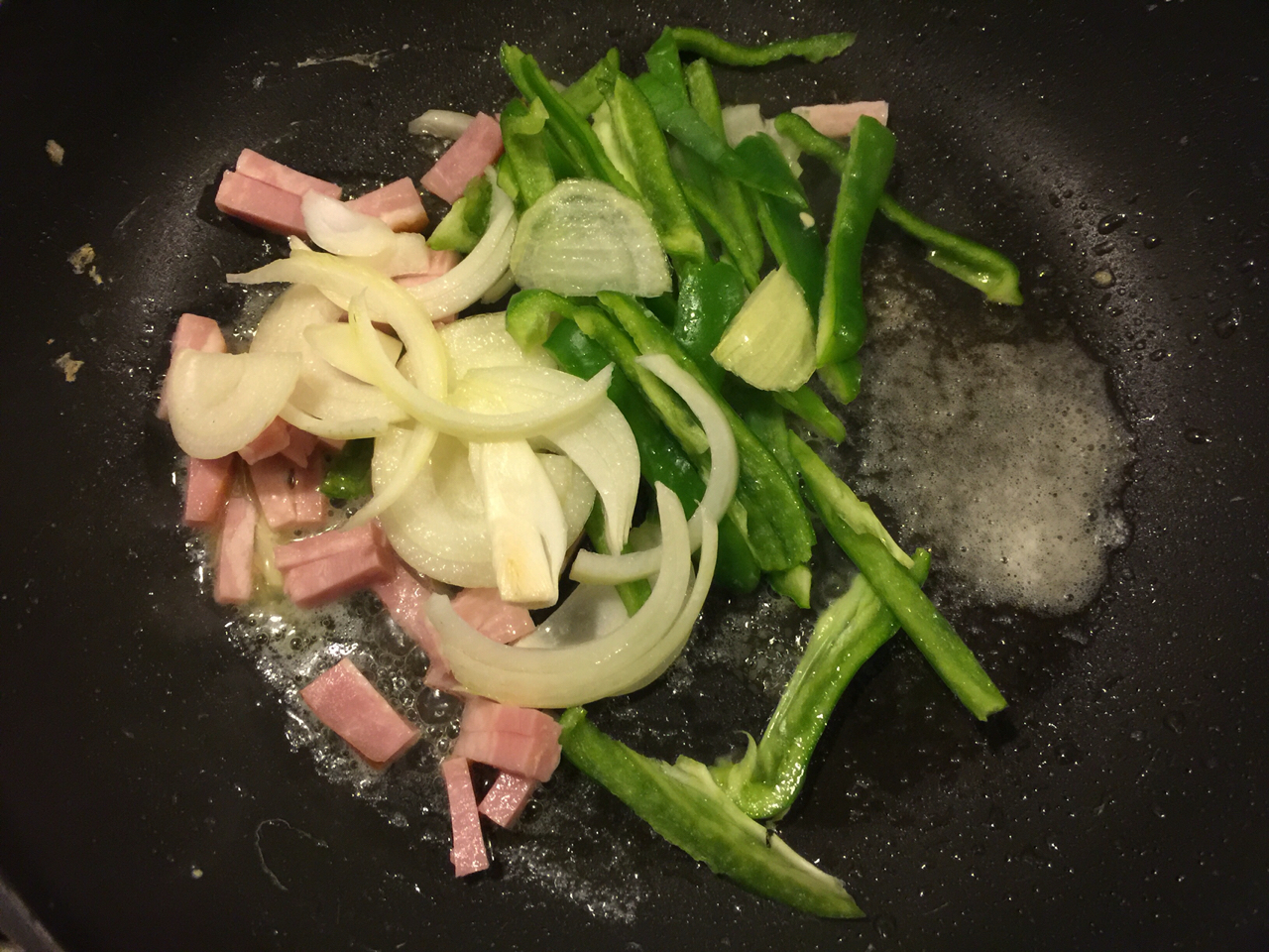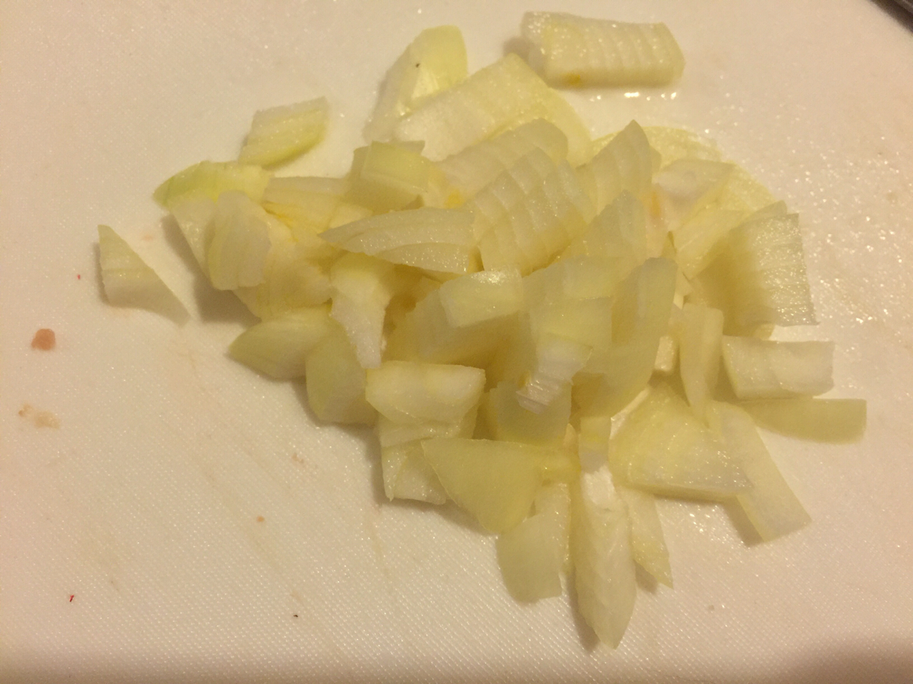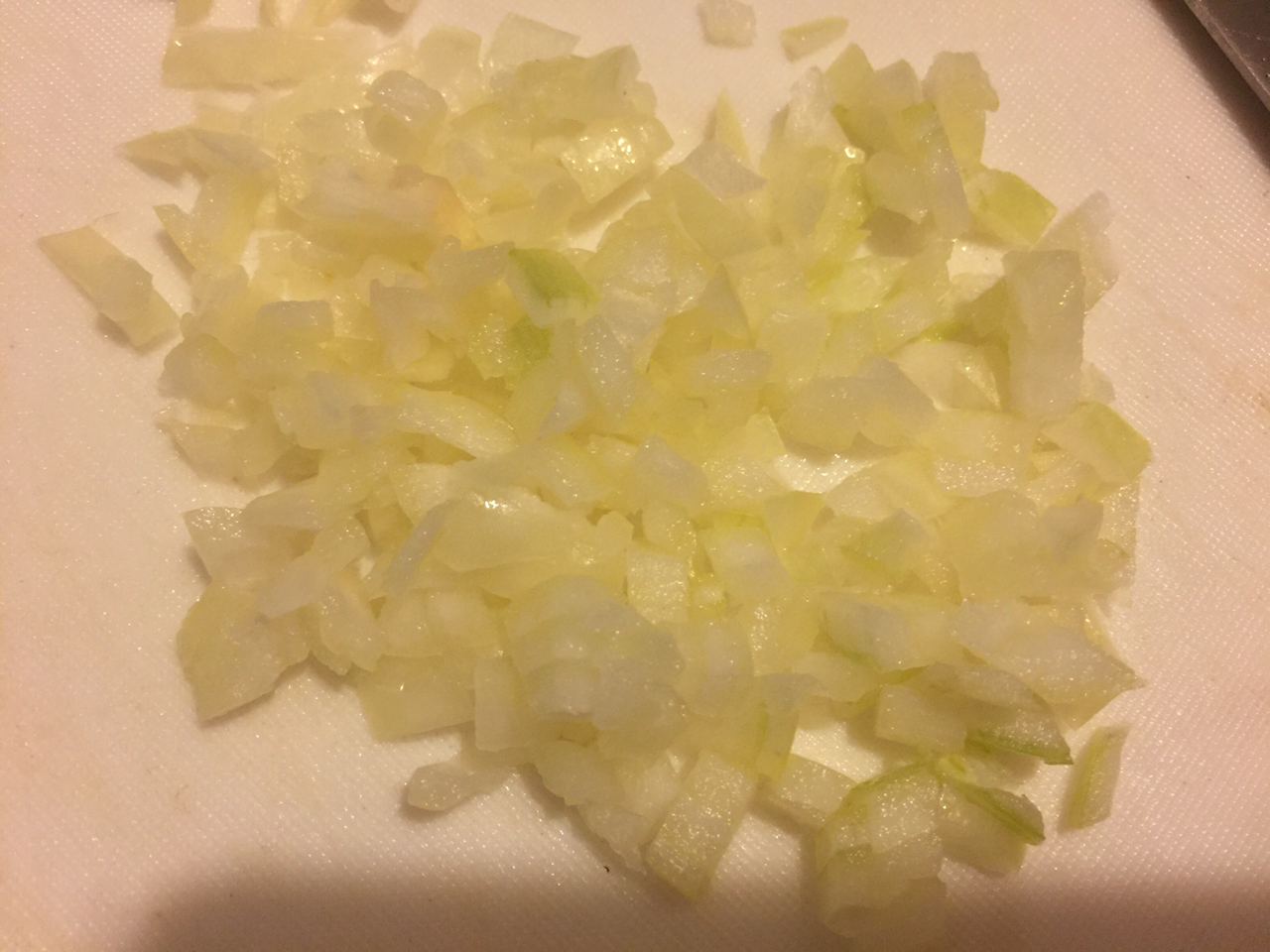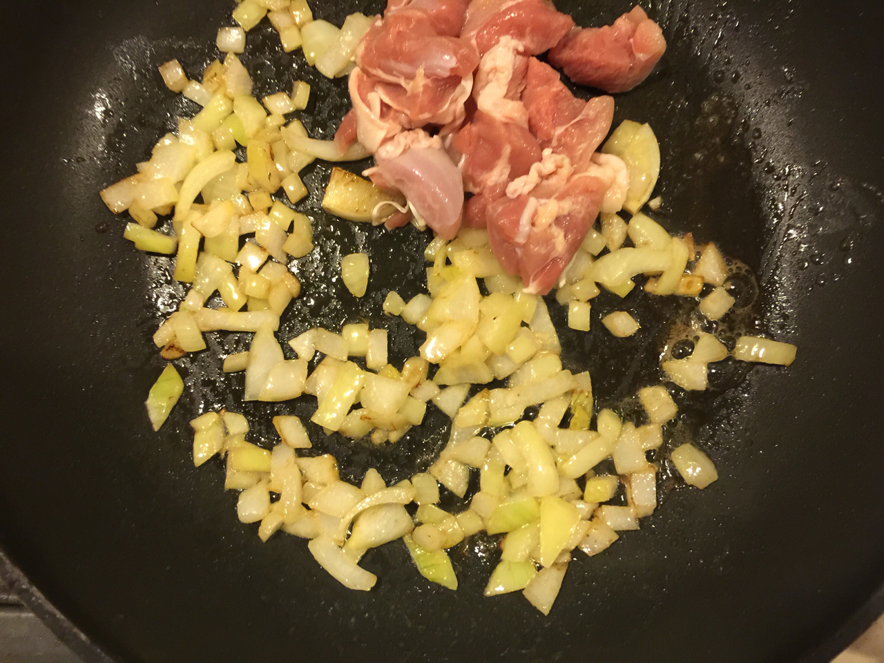②フライパンにオリーブオイルを熱し、玉ねぎを炒める。玉ねぎが透き通ってきたら、薄力粉を加えて、粉っぽさがなくなるまで炒める。