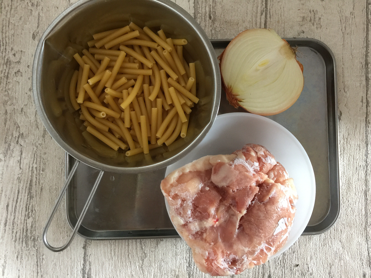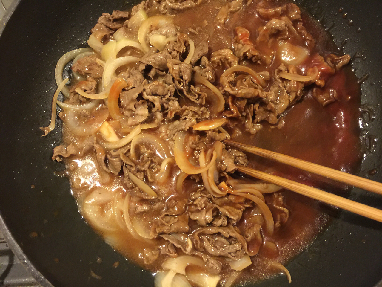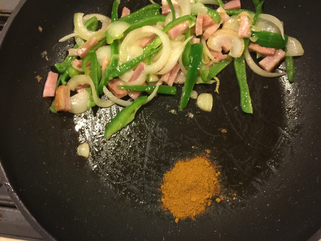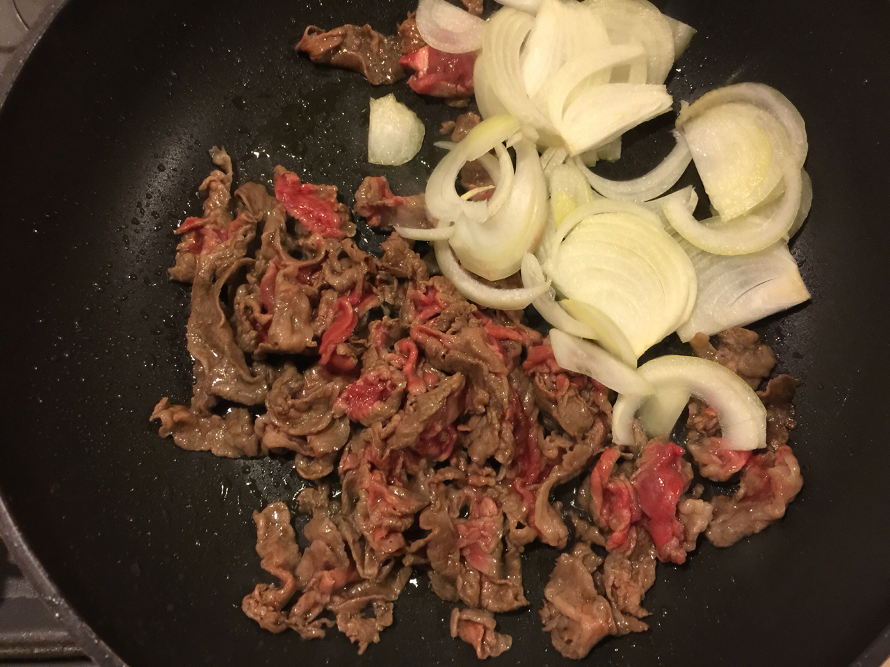 ②フライパンにオリーブオイルを熱し、玉ねぎを炒める。玉ねぎが透き通ってきたら、薄力粉を加えて、粉っぽさがなくなるまで炒める。
