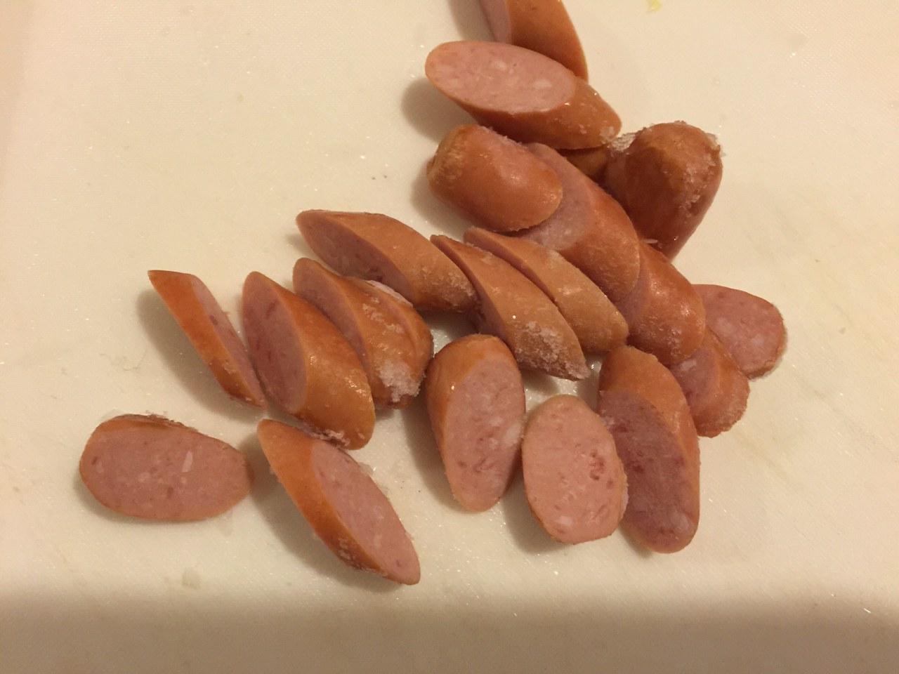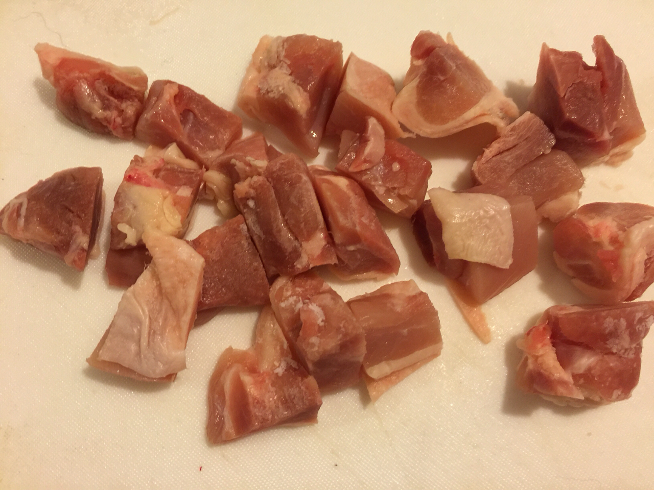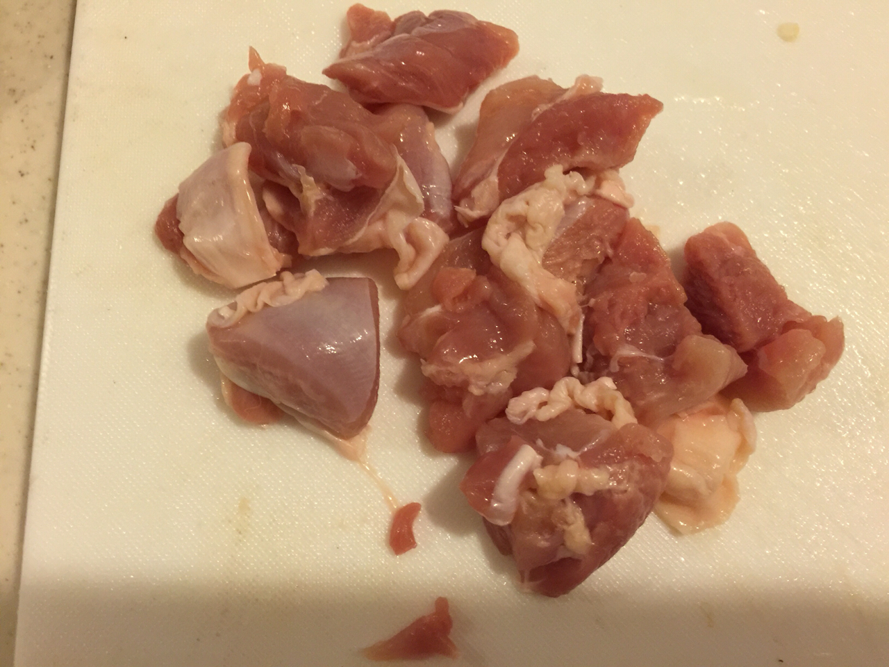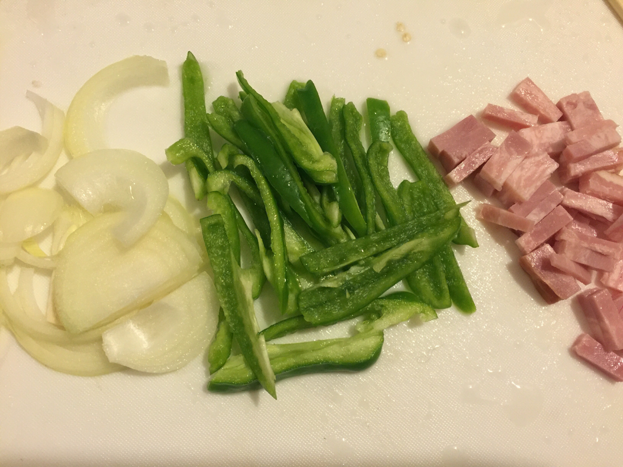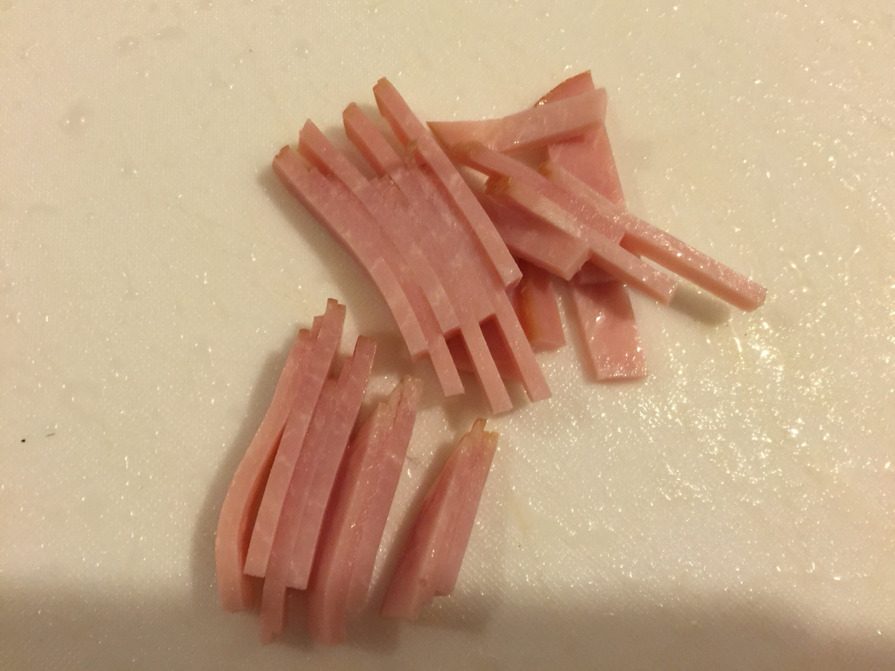 ・むきエビは、厚さを半分にし、筋を取っておく。