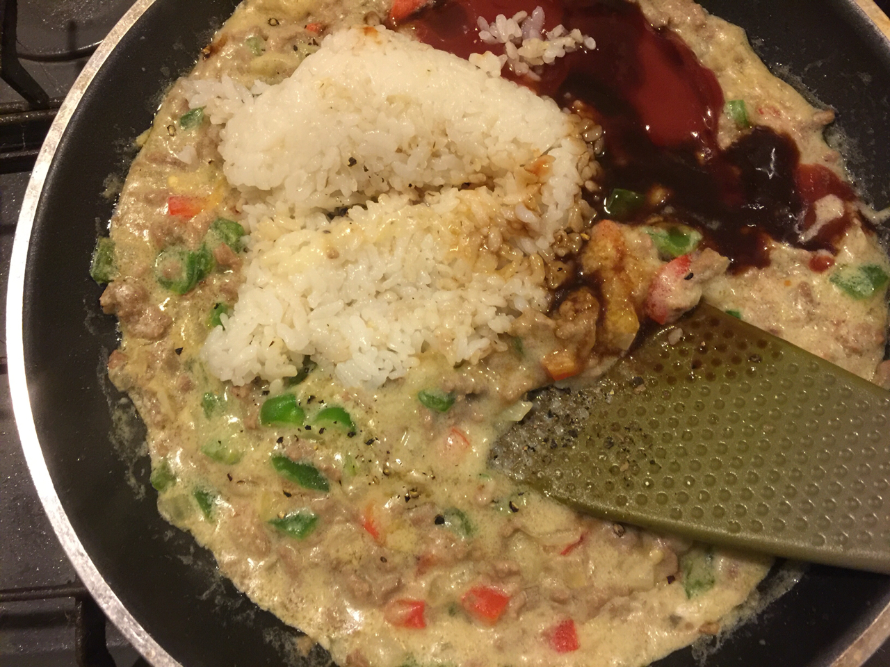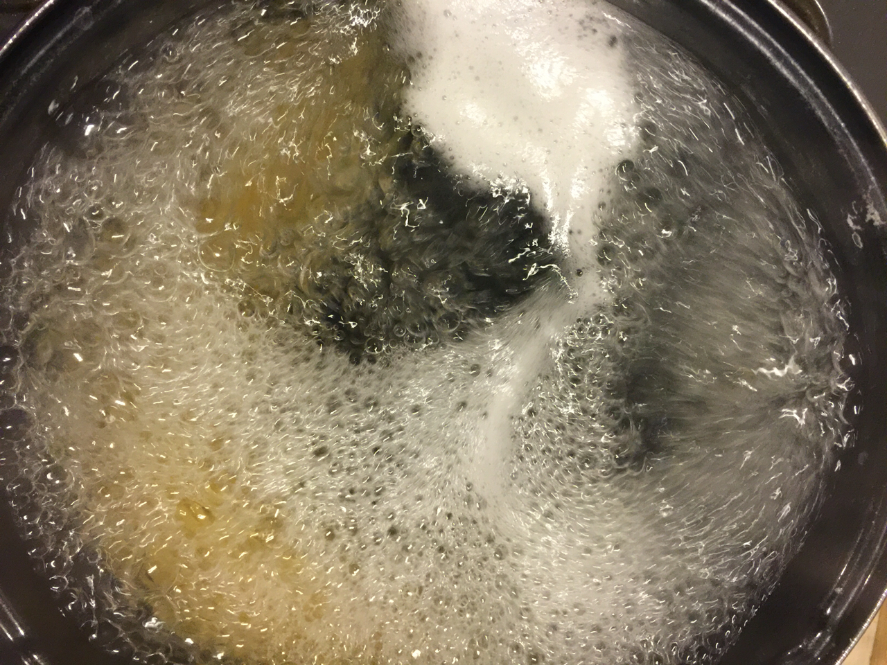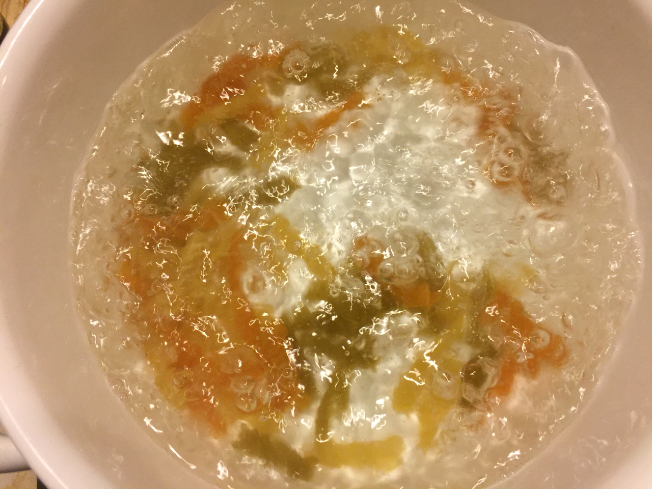 ④③に味噌とアボカド(粗くつぶしたもの)を加えて、よく混ぜ合わせる。トロミがでるまで5〜6分煮詰める。