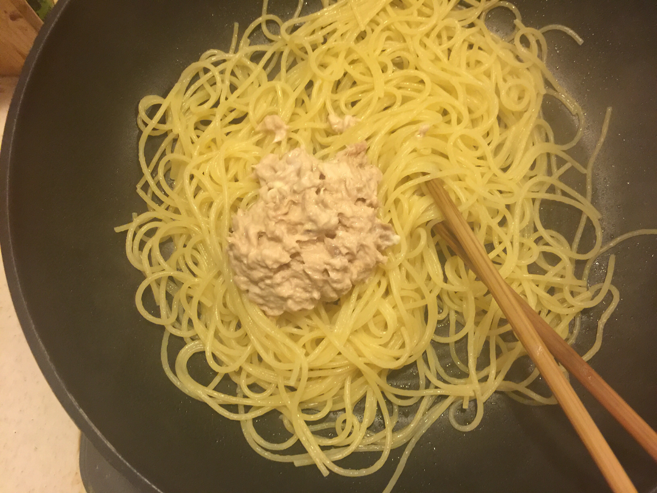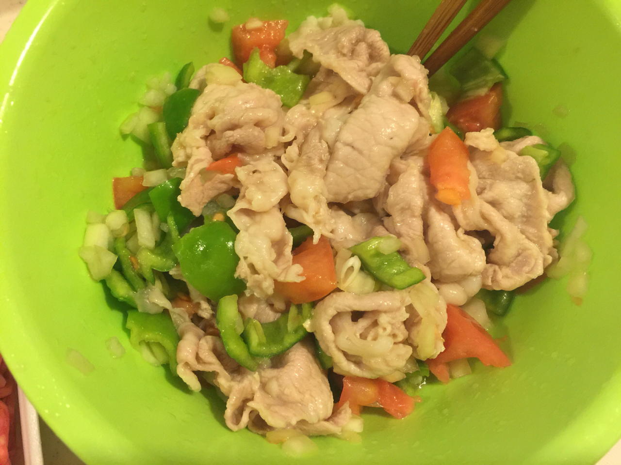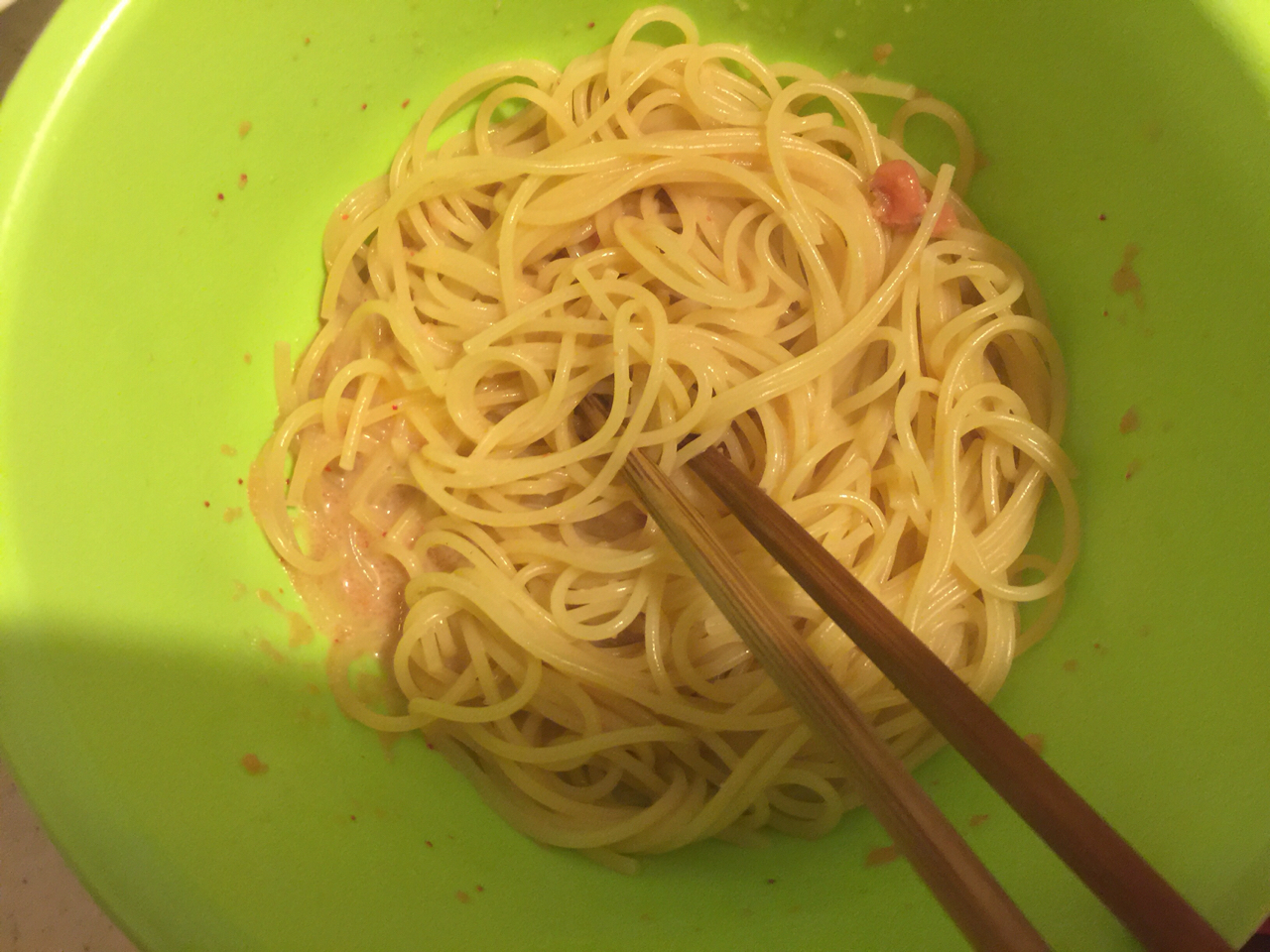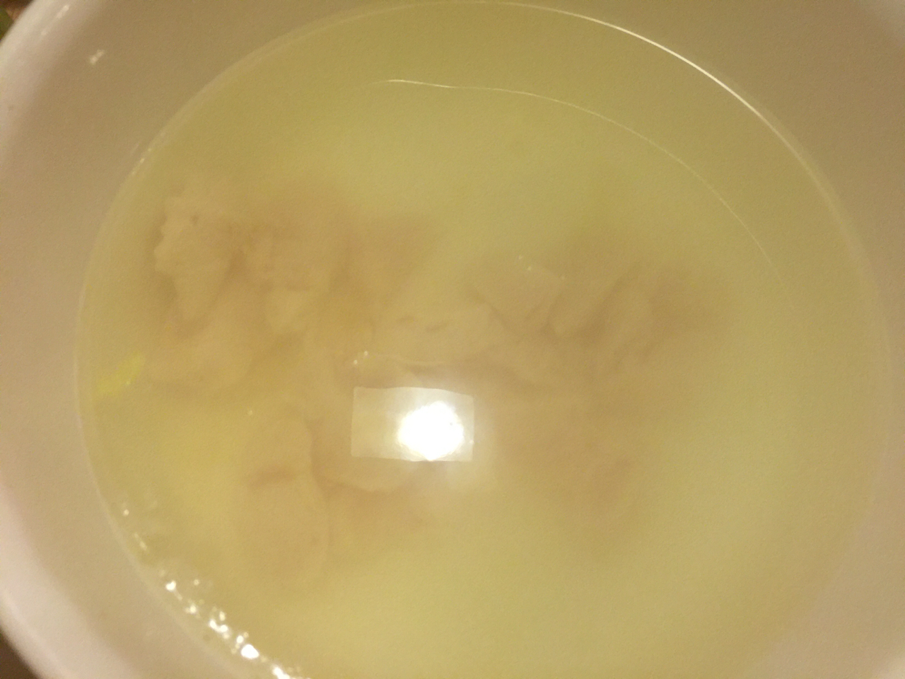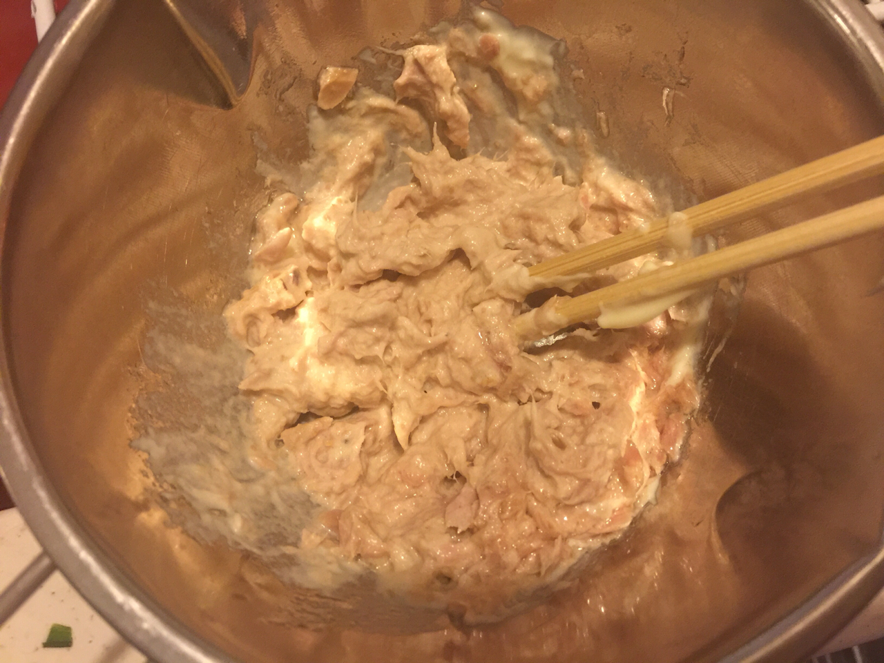 ①耐熱容器に、むきエビと◎を入れ、ふんわりラップをする。電子レンジ600wで約3分加熱する。