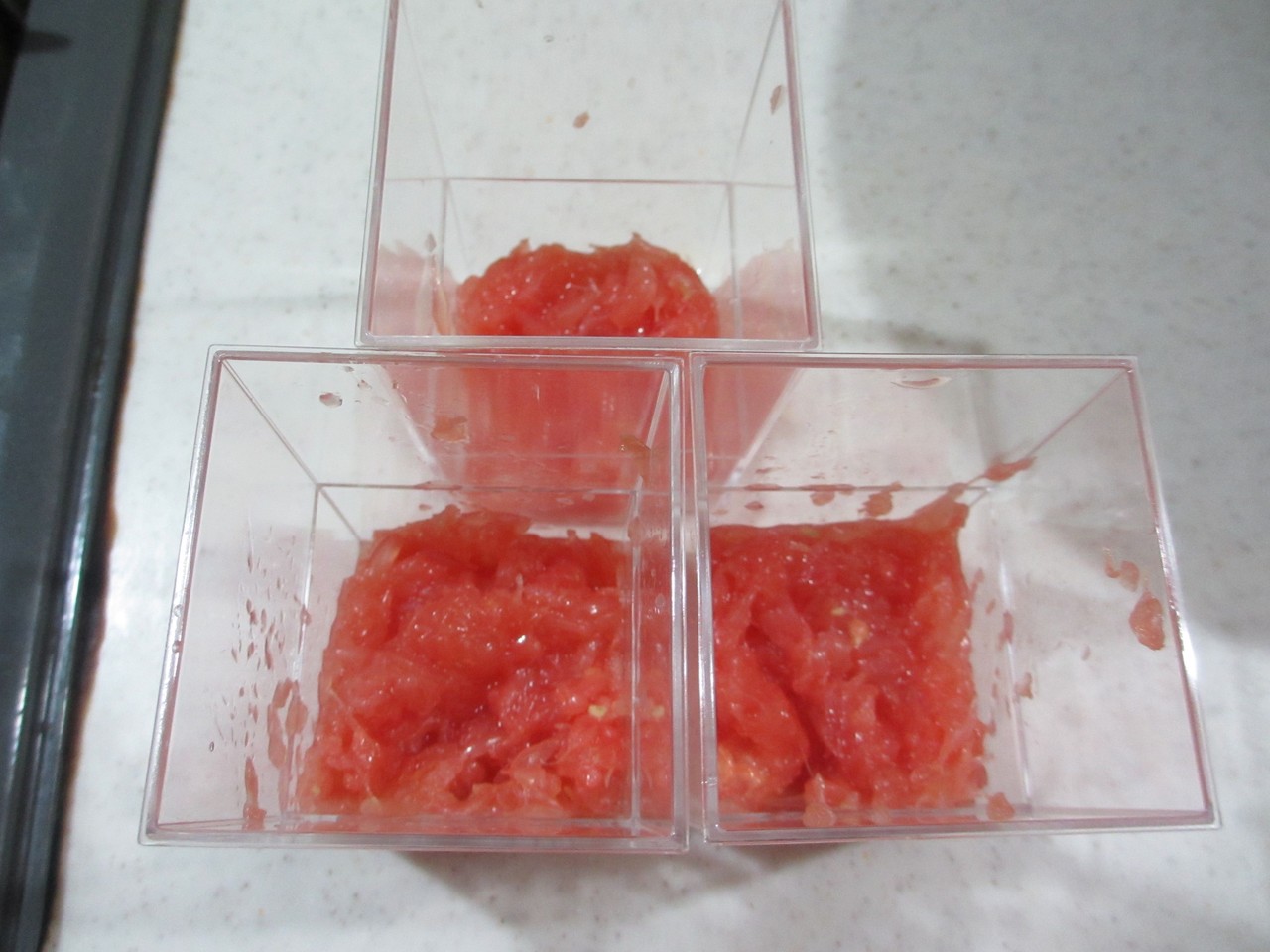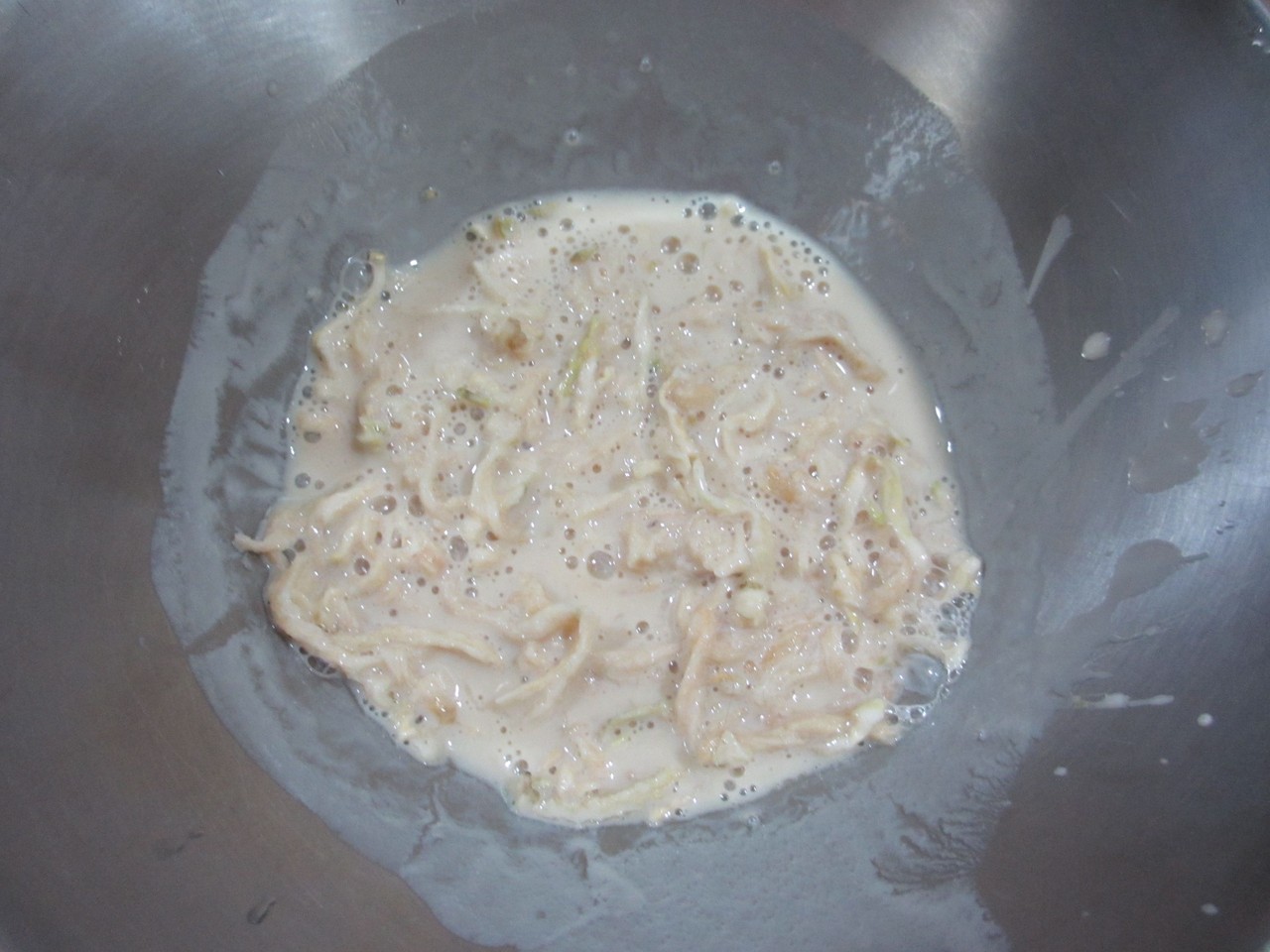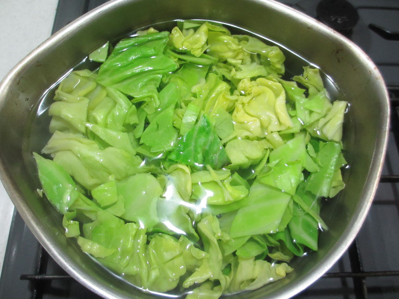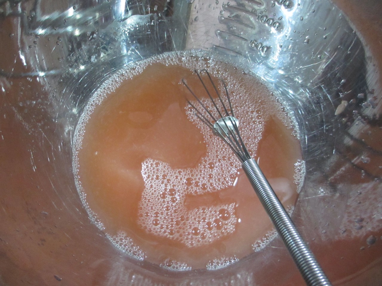 ②①を一旦取り出し、上下を返して、再びラップをかぶせ、更に3分ほど加熱する。