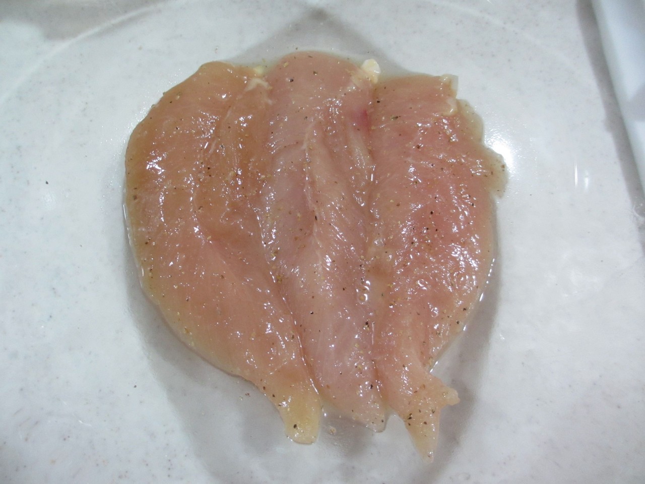 ①耐熱容器に、鶏手羽元を漬けダレごと入れる。ふんわりラップをして、電子レンジ600wで約5分加熱する。