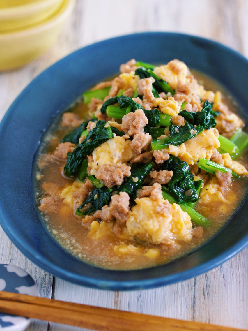 お子様でも食べやすい青菜を使ったメインおかず。冷蔵庫にあるものでアレンジ可能でしかも、お財布にもやさしい♪また、フライパンで炒めるだけなので10分もあれば余裕で完成しますよ〜( ´艸`) ★フォローやクリップ、メダルの送付、いつもありがとうございます♪励みになっております( ´艸`)★