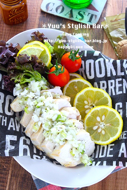 鶏むね肉で作る♡蒸し鶏の香味ソース