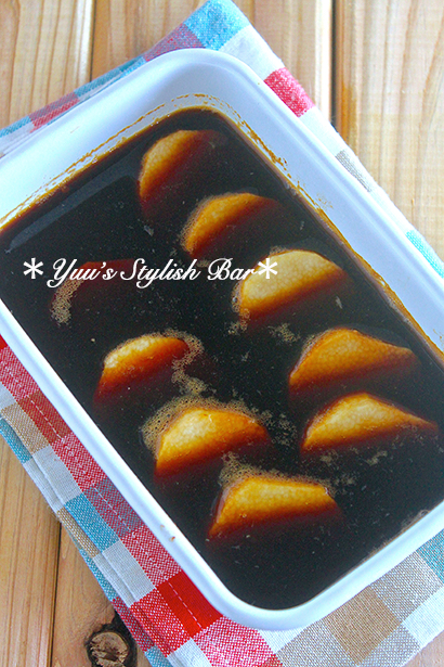 ①レンコンは、よく洗って、半月切り(イチョウ切り)にし、酢水に放っておく。