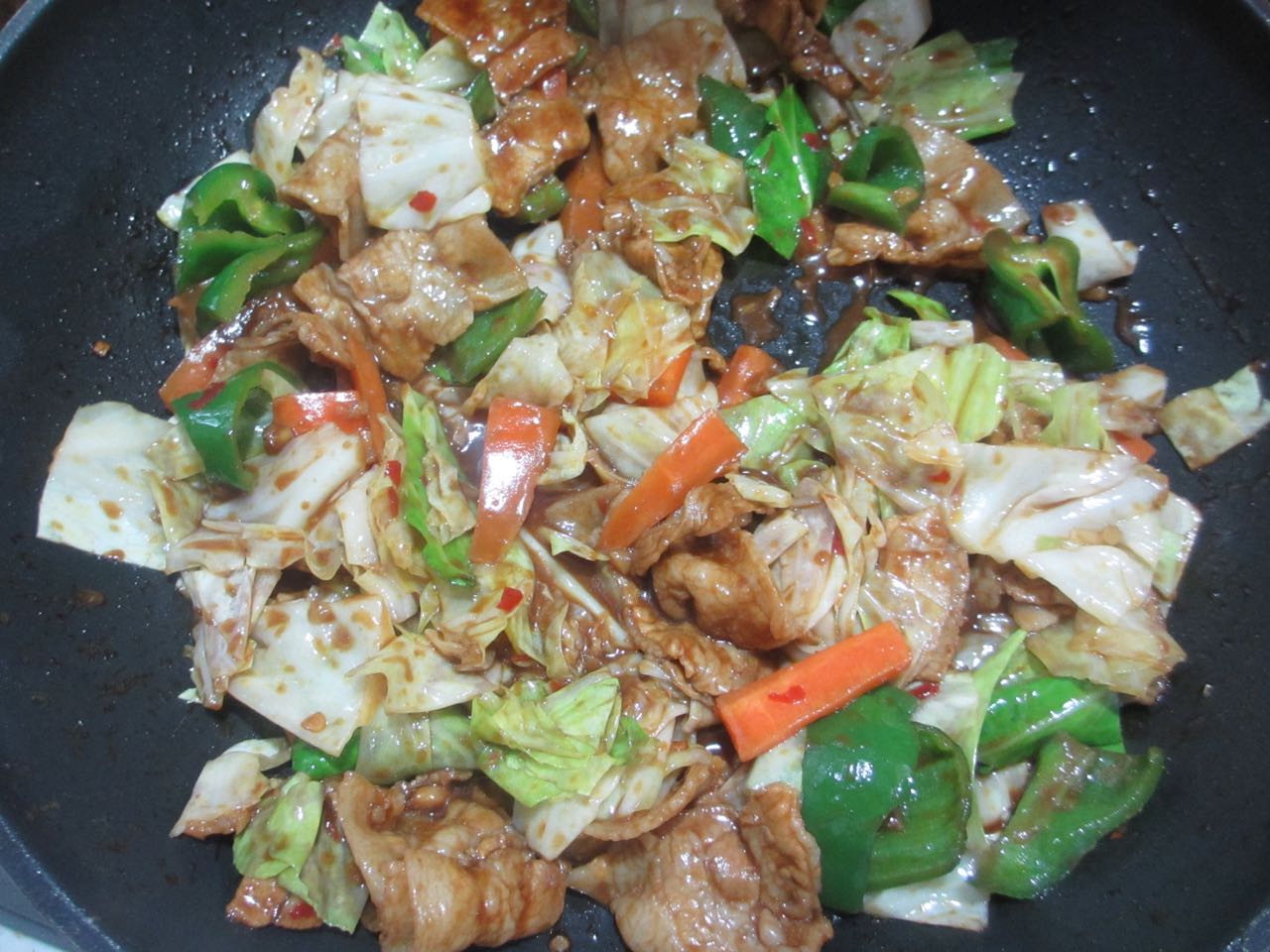 タレを加えたら、サッと混ぜ合わせる程度でOK。あまり火を通しすぎると折角の風味が飛んでしまいます。