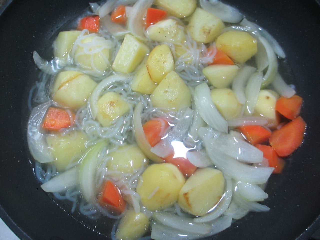 ①じゃがいもはフチが透明になるまで炒めること