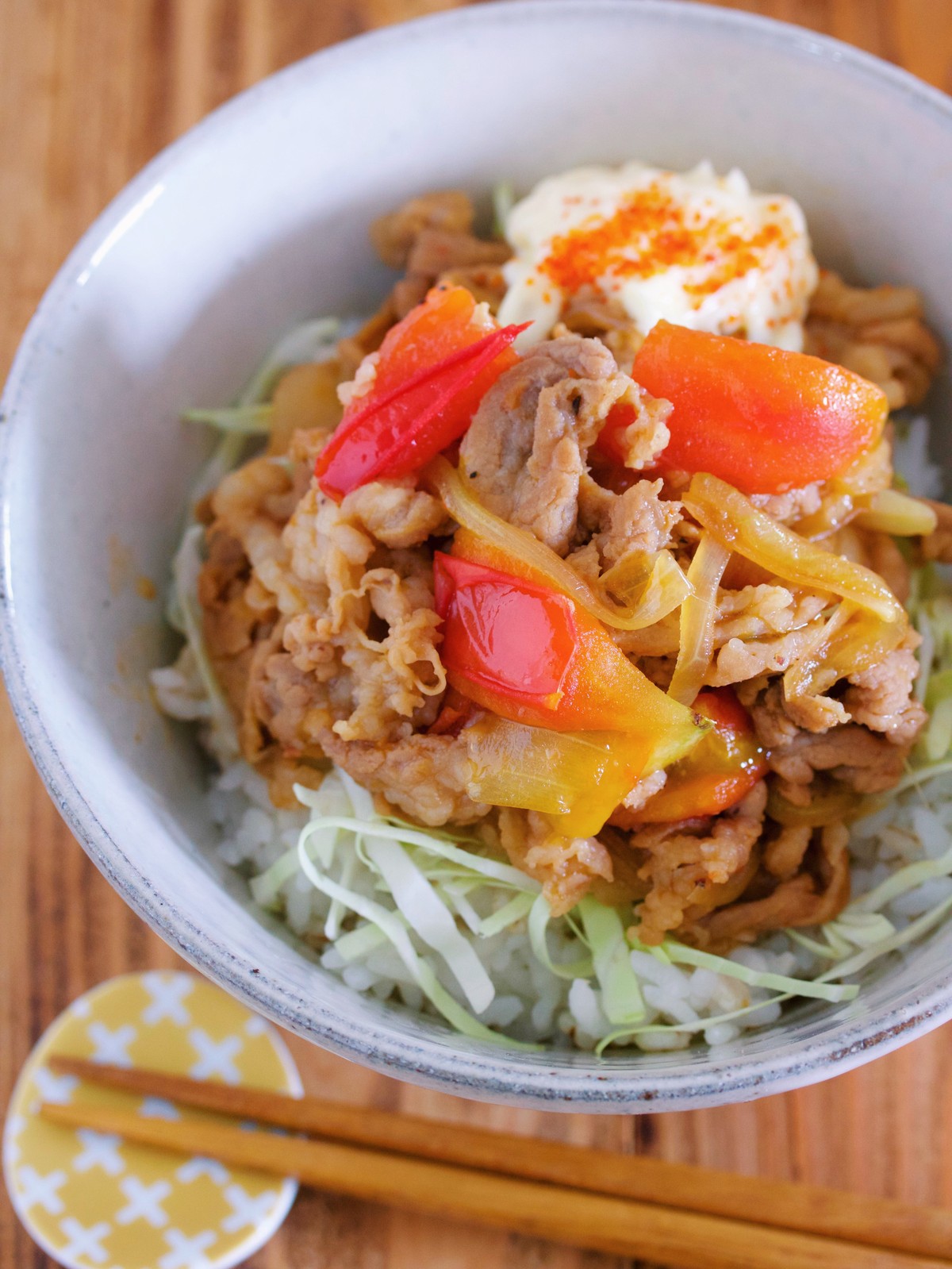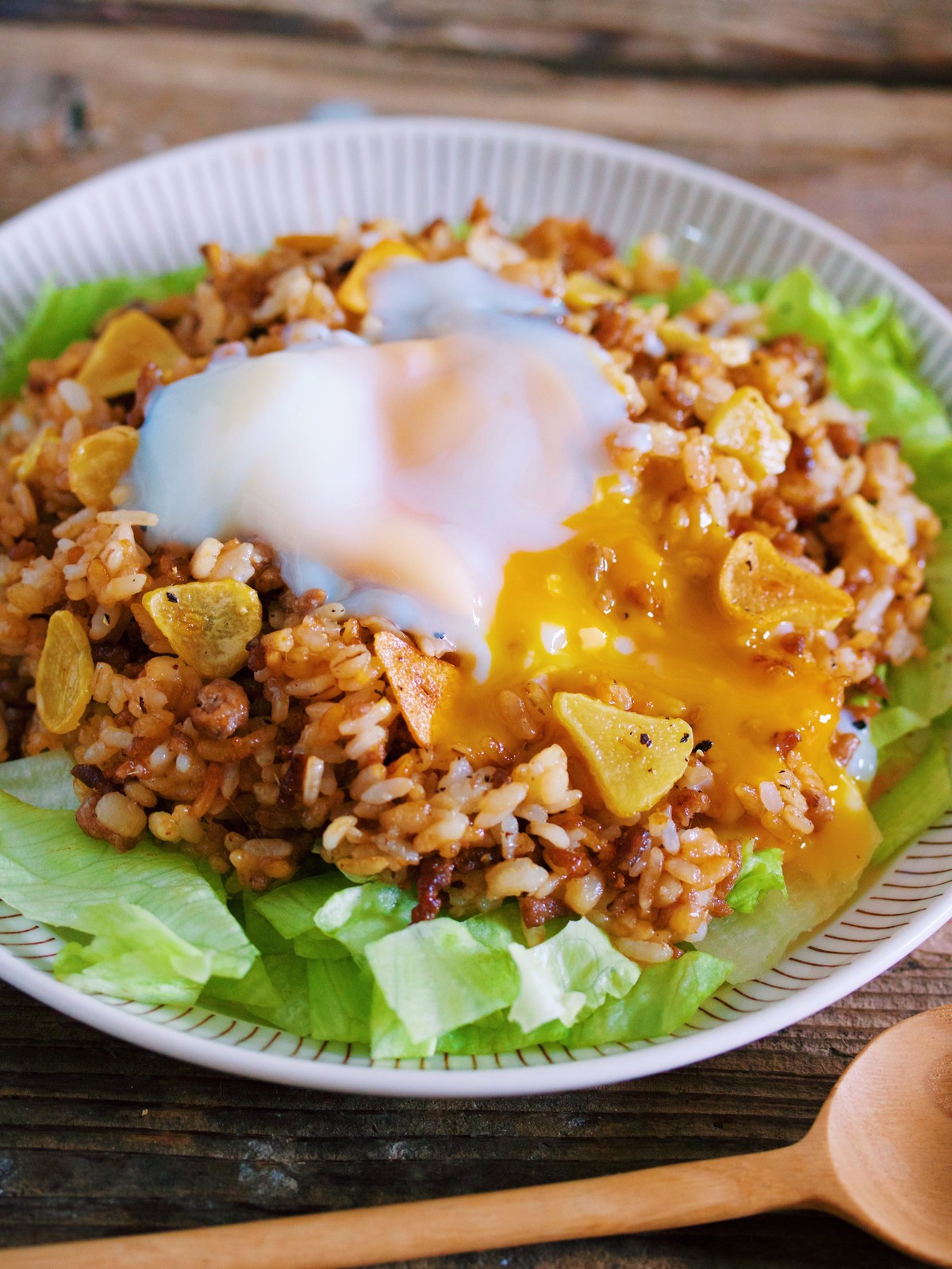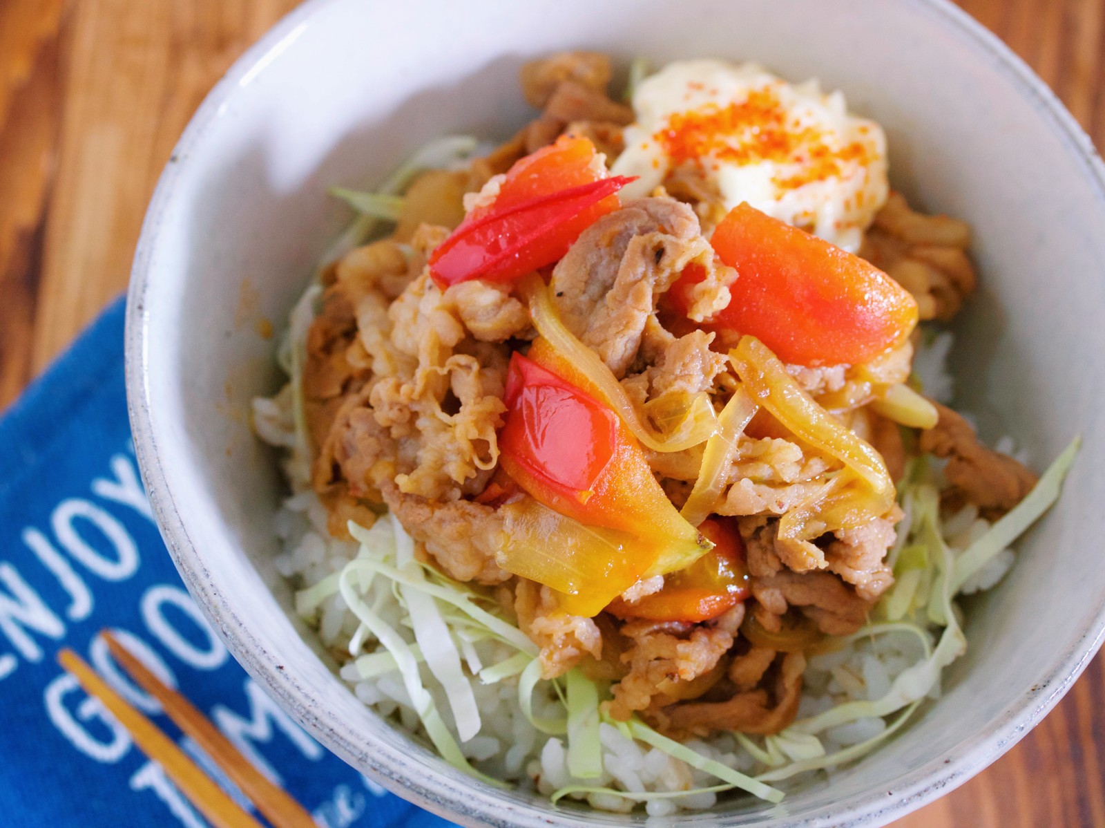 ”たっぷりきのこ”をごはんに乗せ