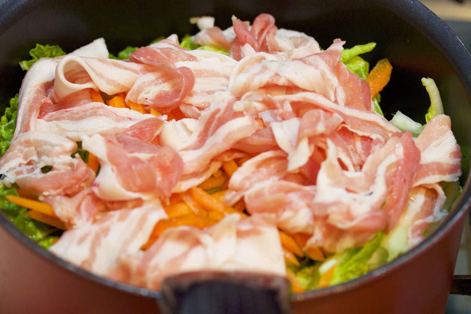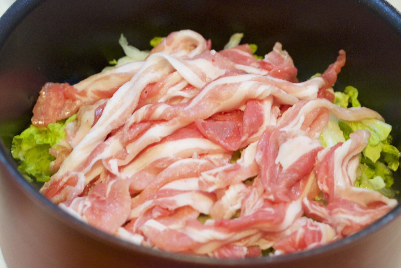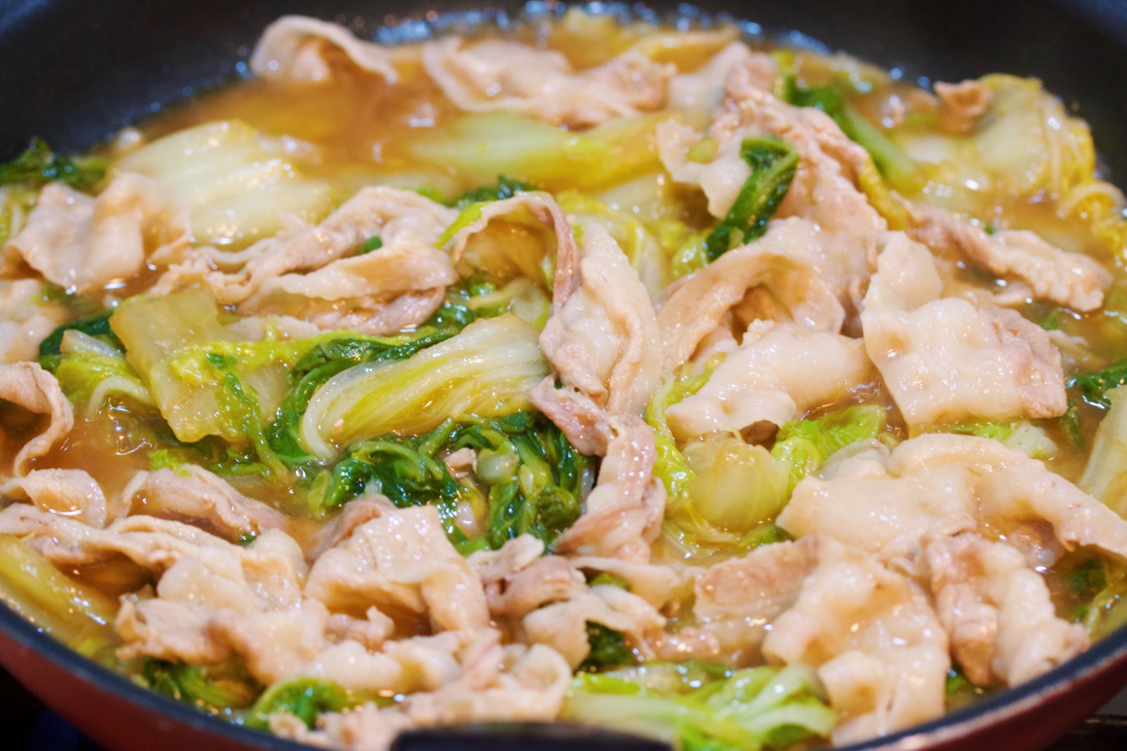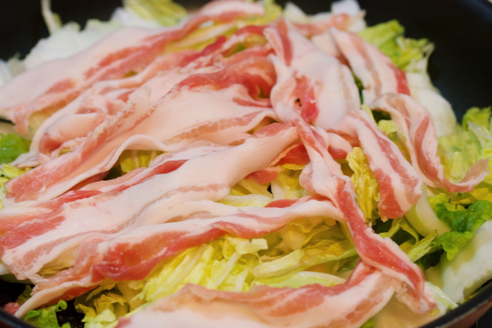 あとは、豚バラとキャベツを加えて