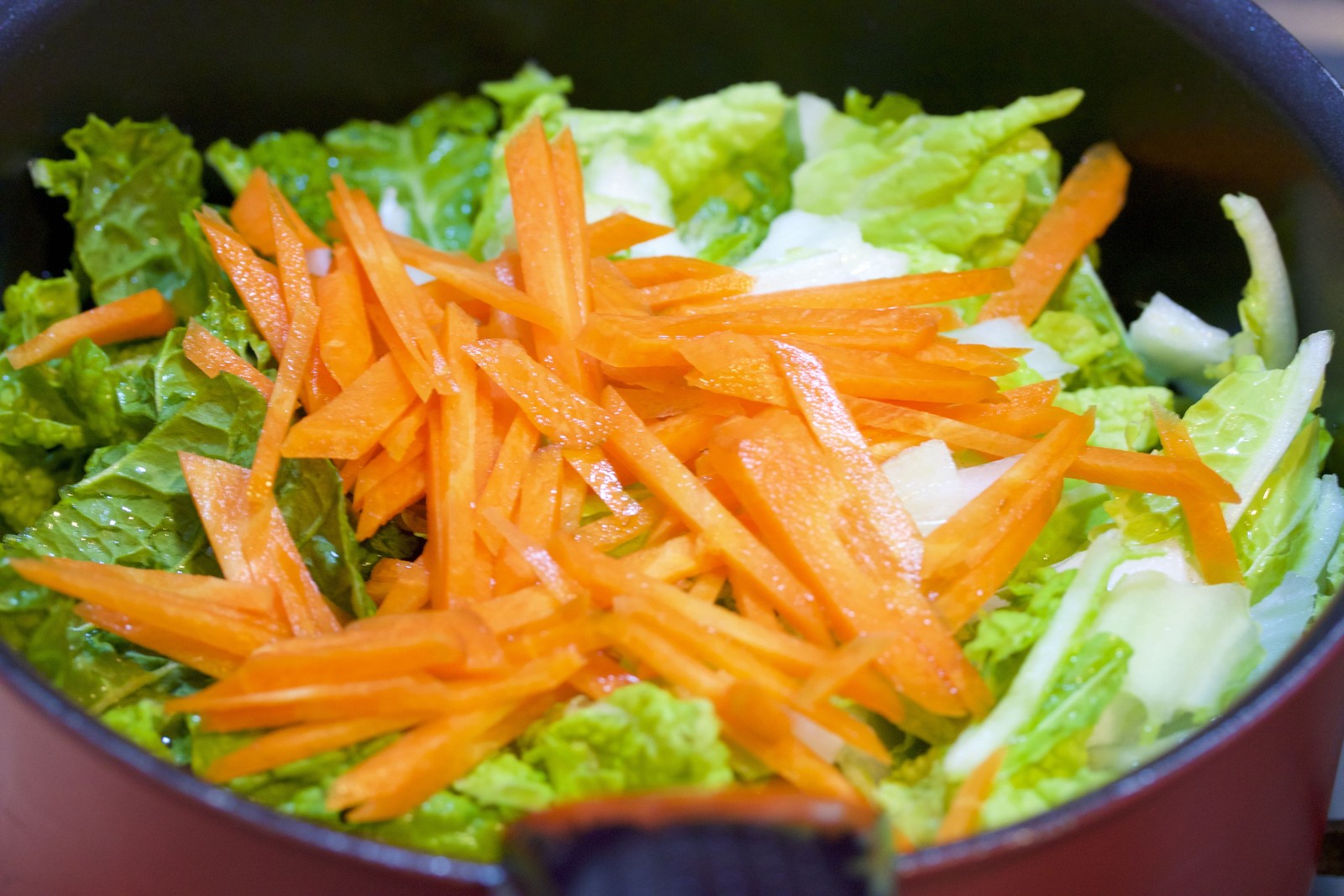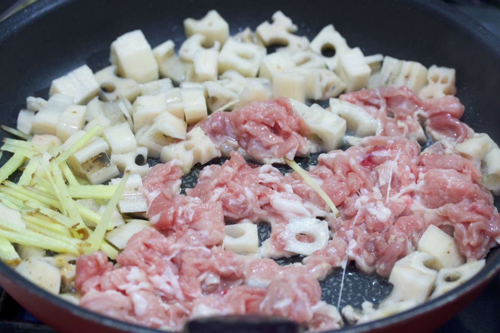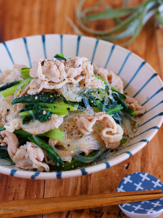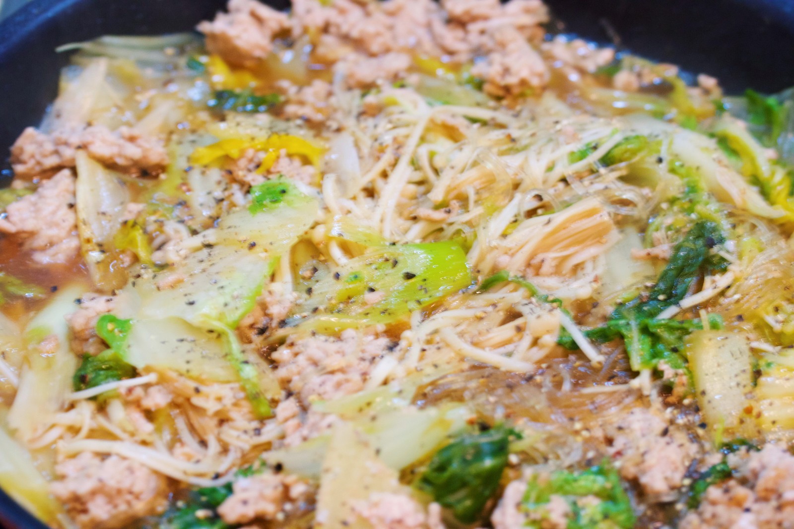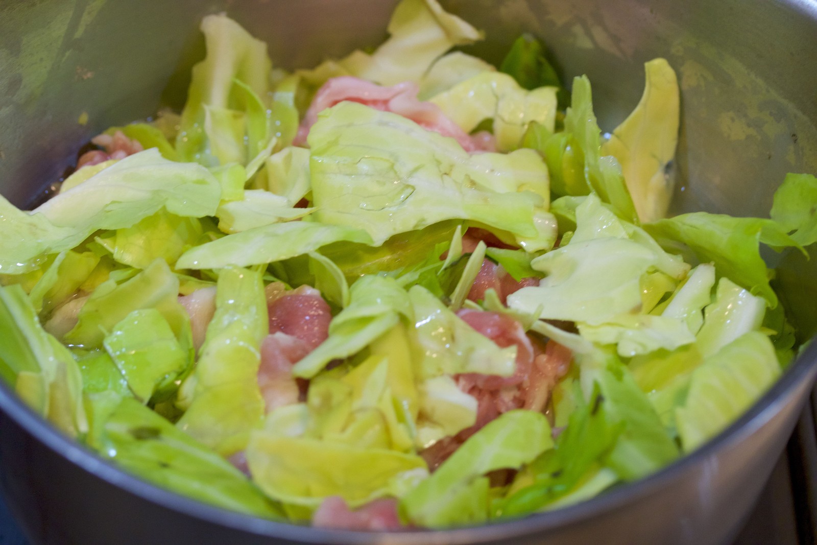 あとは、豚バラとキャベツを加えて
