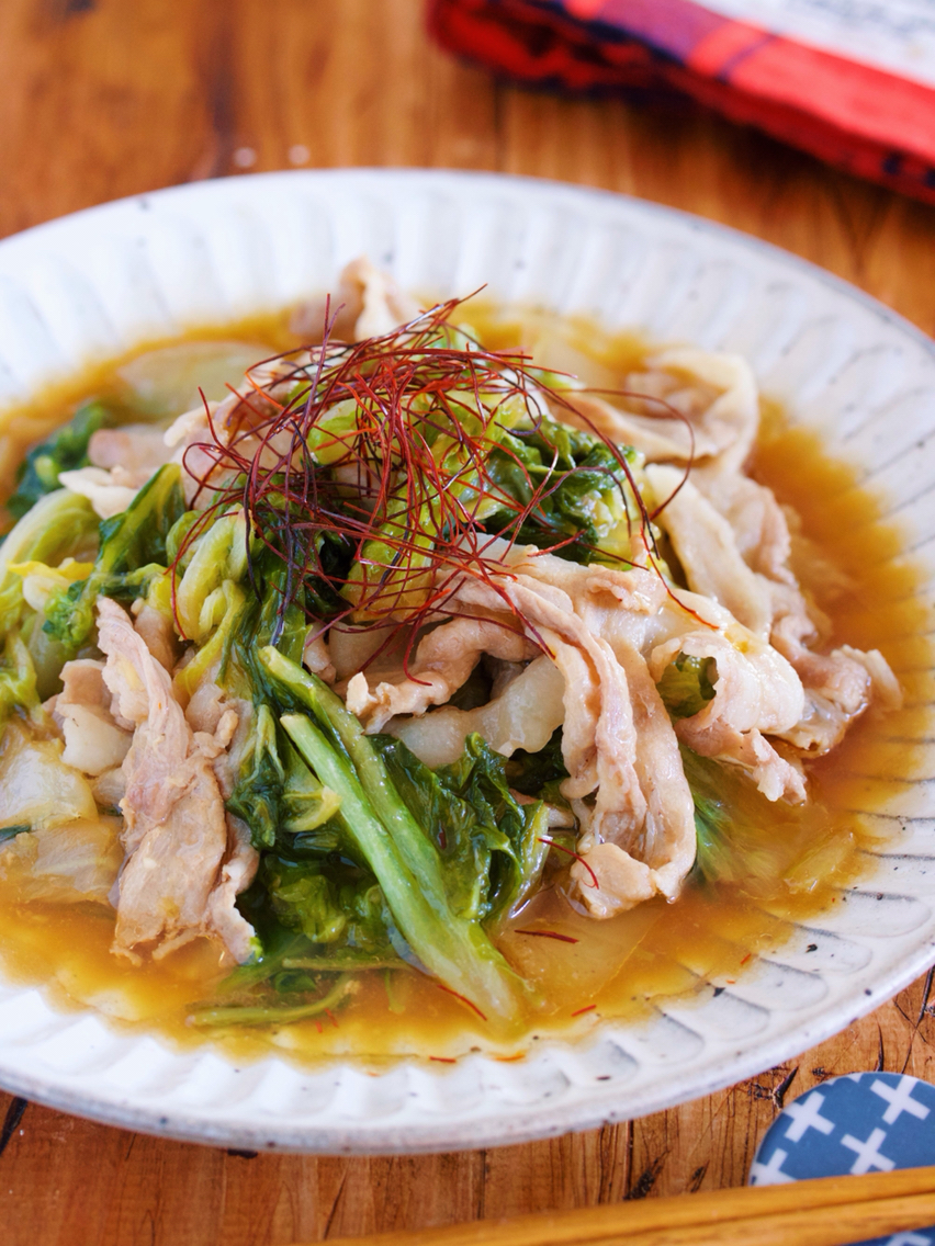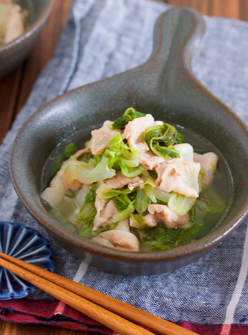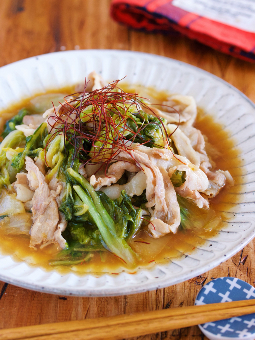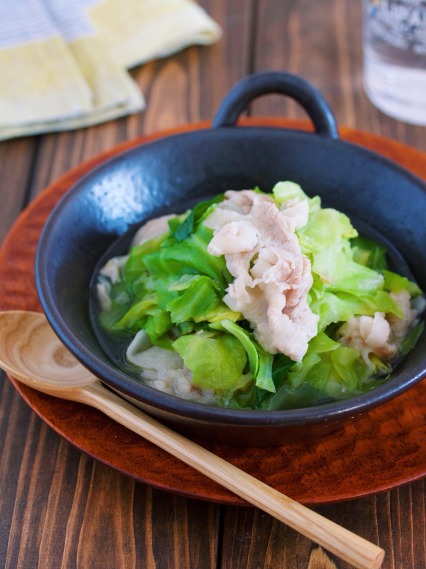 包丁いらず♪2素材×2調味料♪『ゆず香るだし仕立て♡豚バラキャベツのサッと煮』