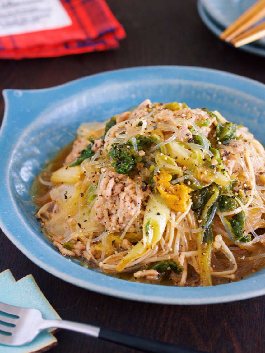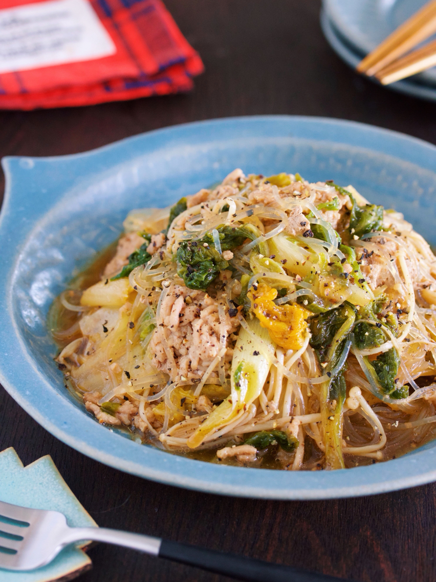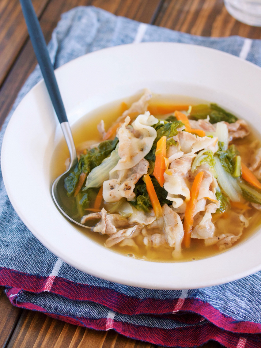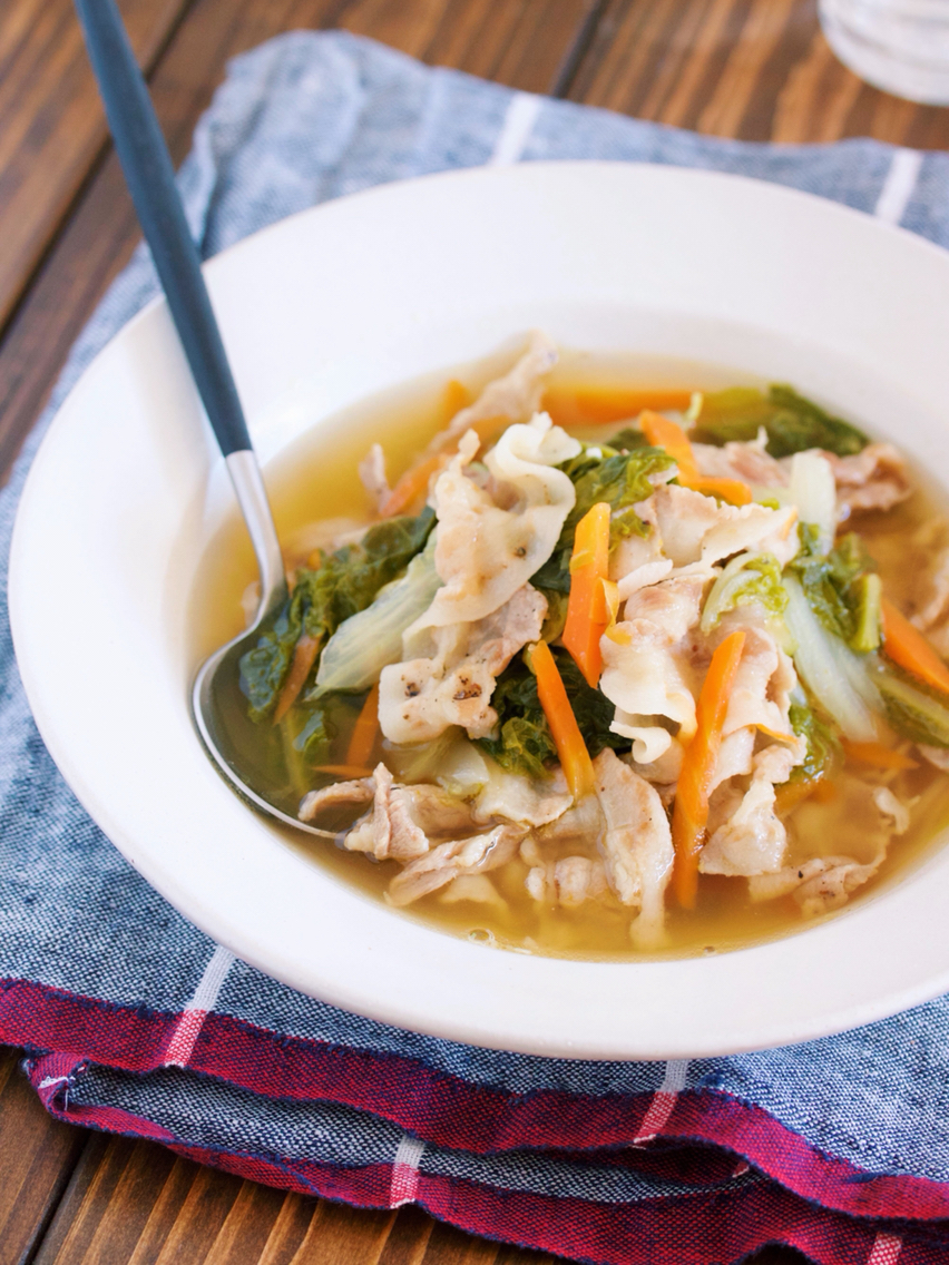 包丁いらず♪2素材×2調味料♪『ゆず香るだし仕立て♡豚バラキャベツのサッと煮』