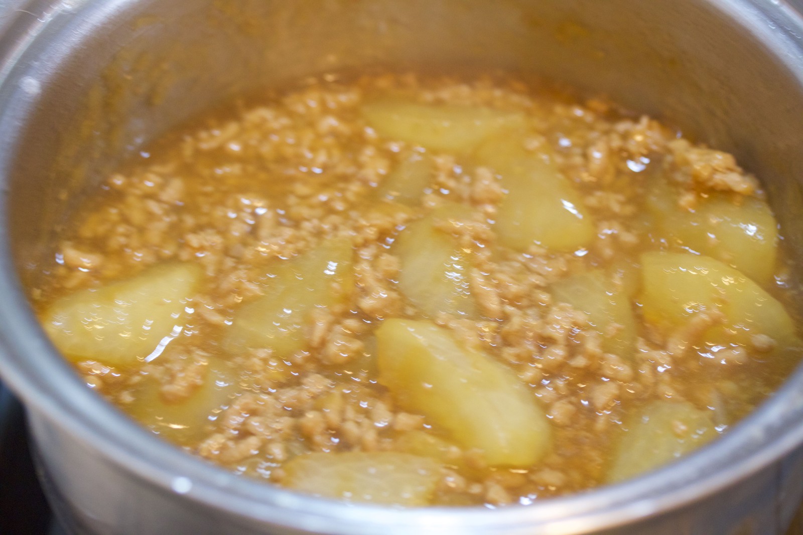 お鍋に、煮汁を沸騰させたら