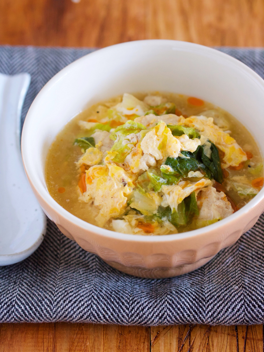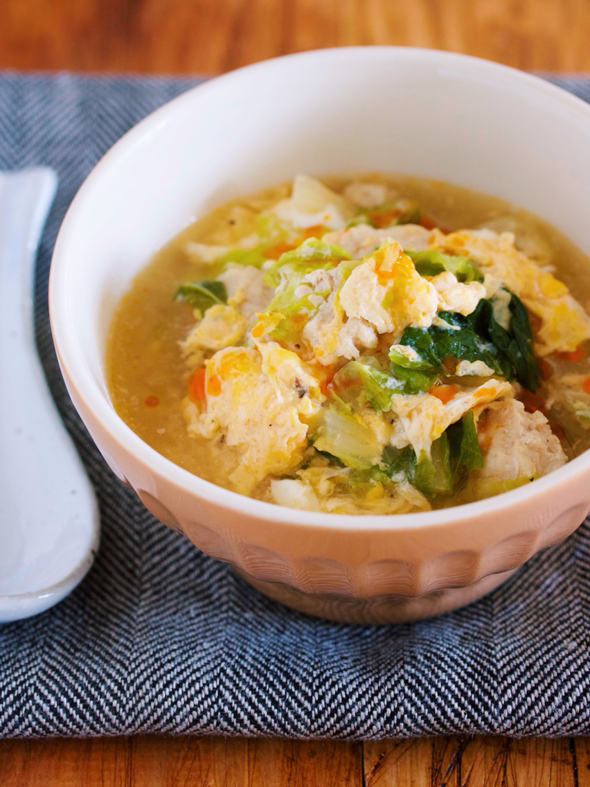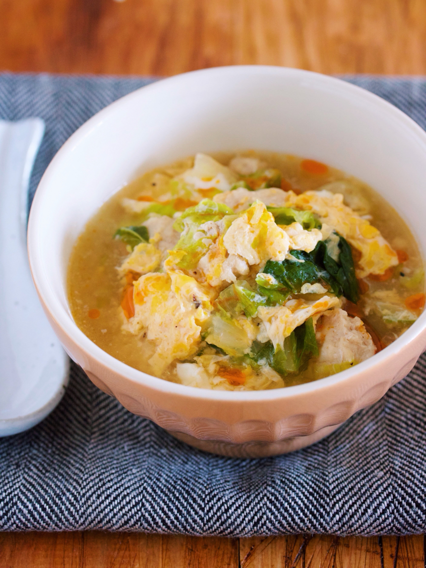 《白菜とひき肉のとろとろ卵スープ》