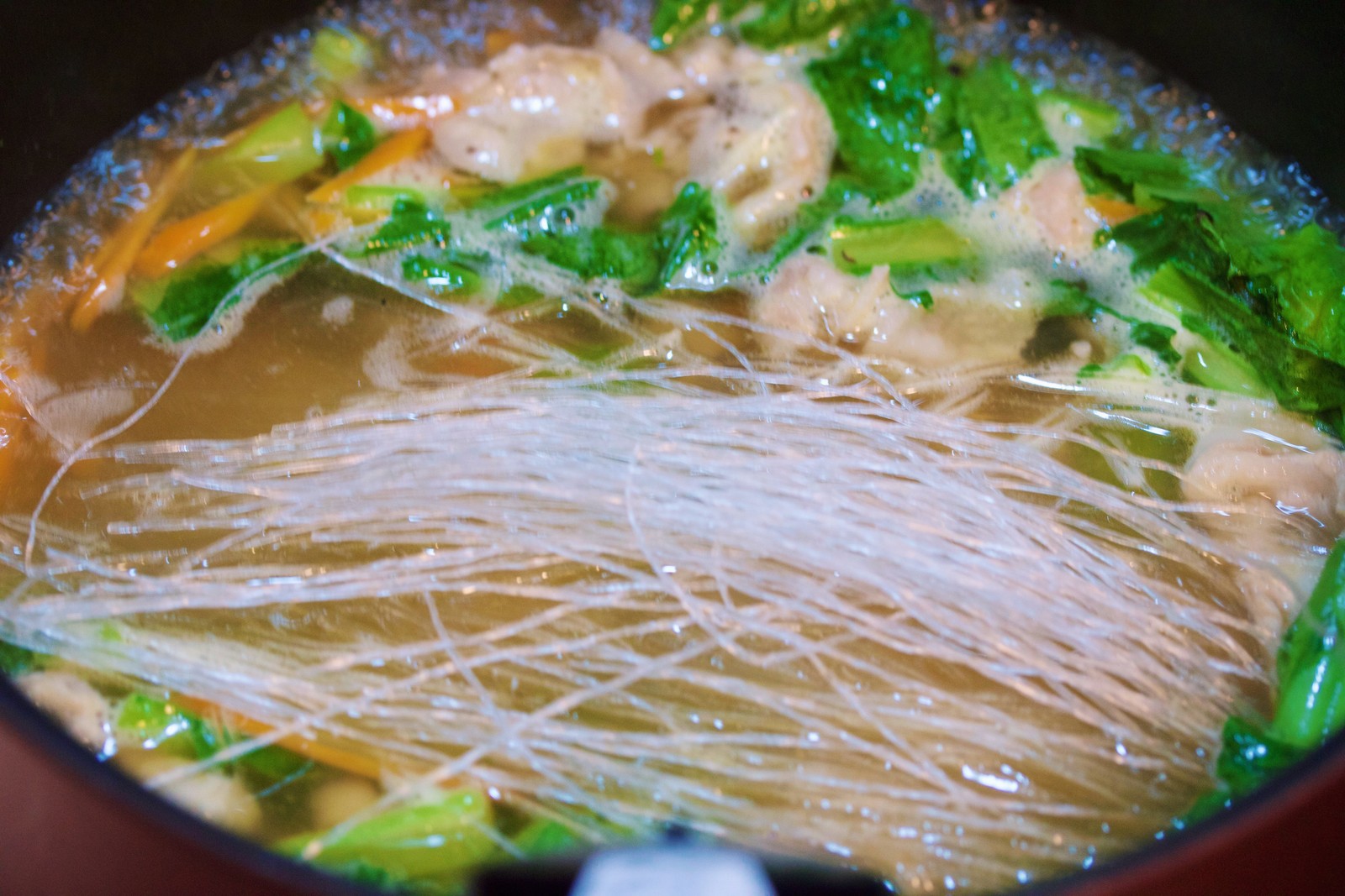 一気にスープを加え