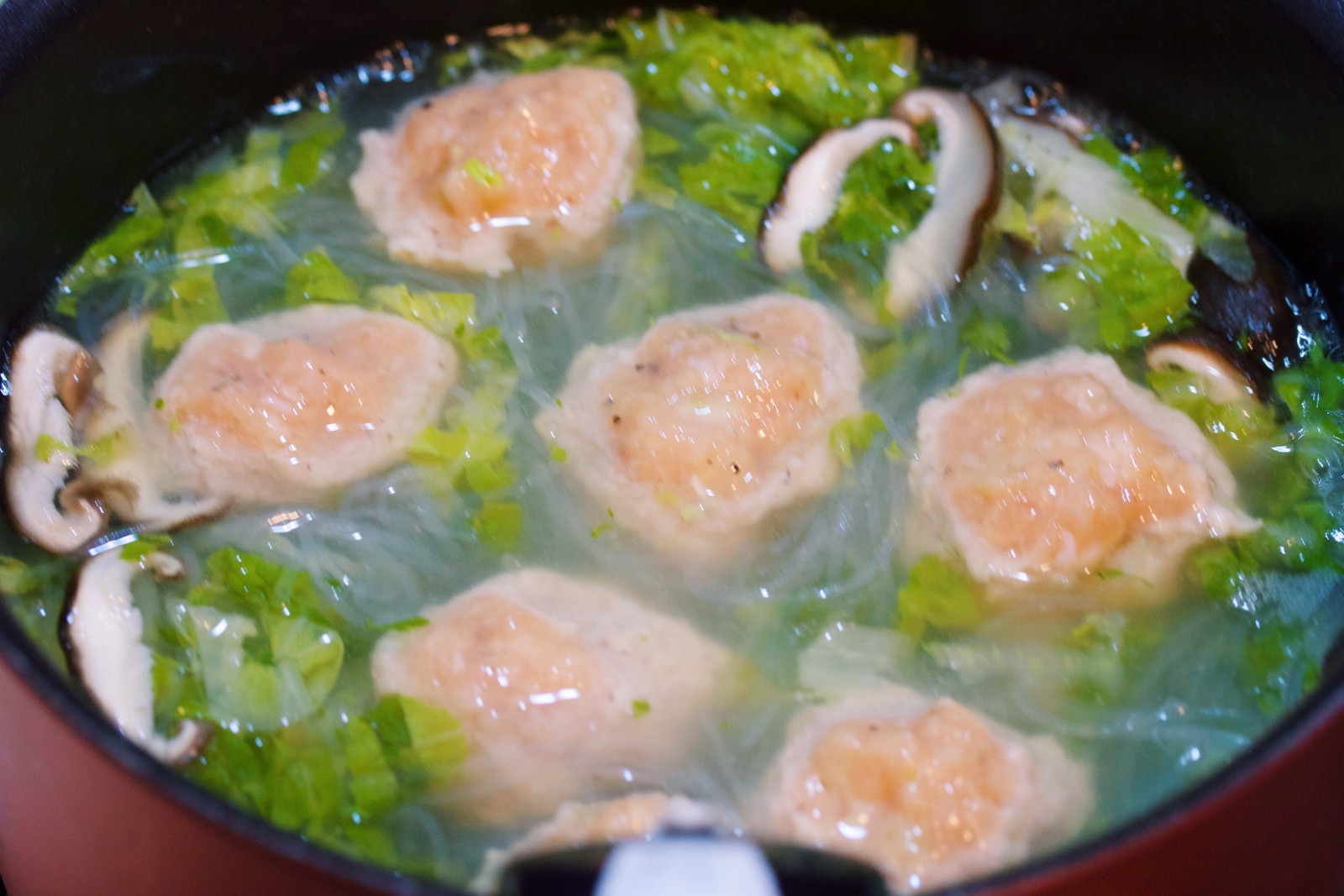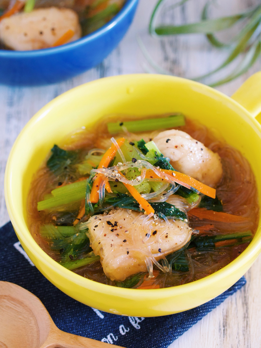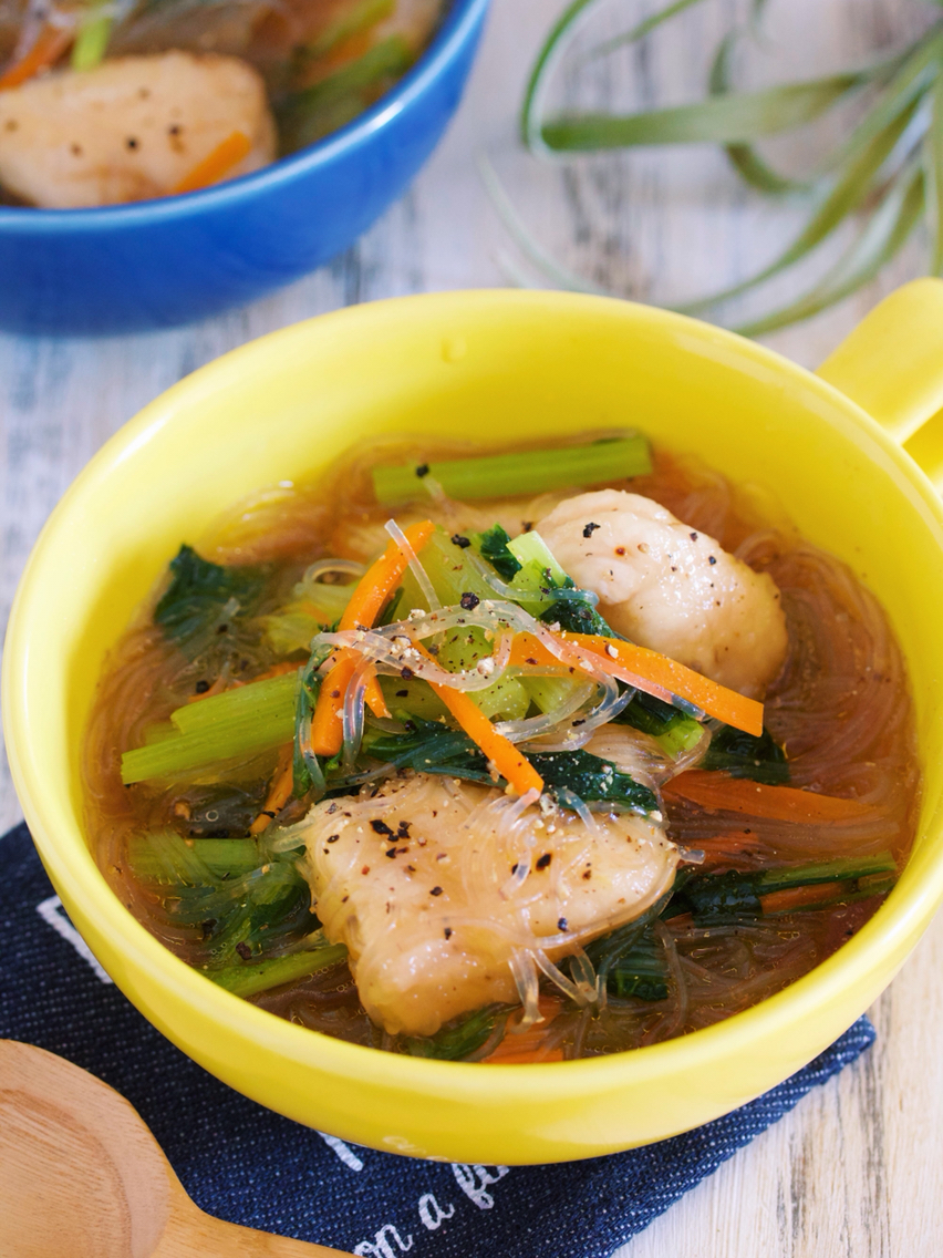 寒い季節に嬉しい身体ポカポカ具沢山スープ。鍋に材料を重ねて10分蒸し煮しあとは、スープと鶏団子を加えたらできあがり♪若干調理時間は長めですがほとんどが放置でOK! しっかり蒸し煮して甘みを引き出したとろとろ白菜と鶏団子の旨味が溶け出たスープは最高のご馳走です( ´艸`)