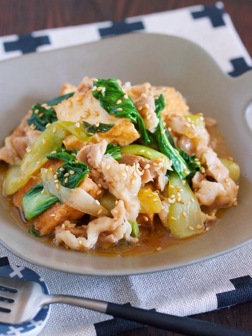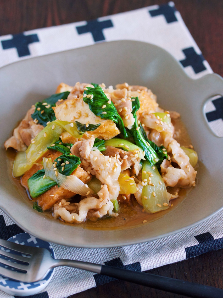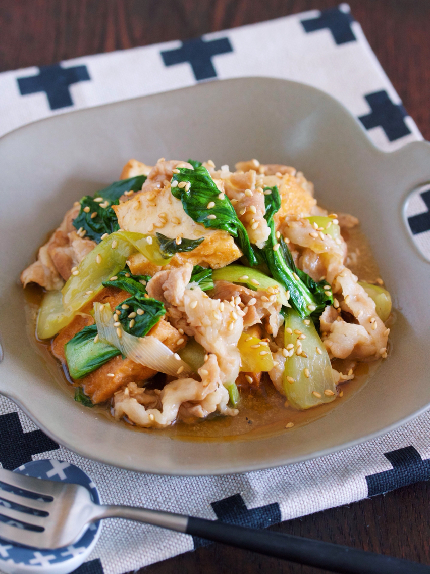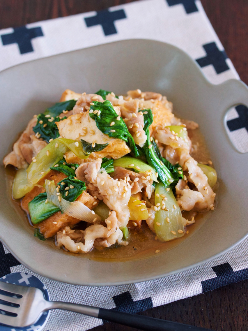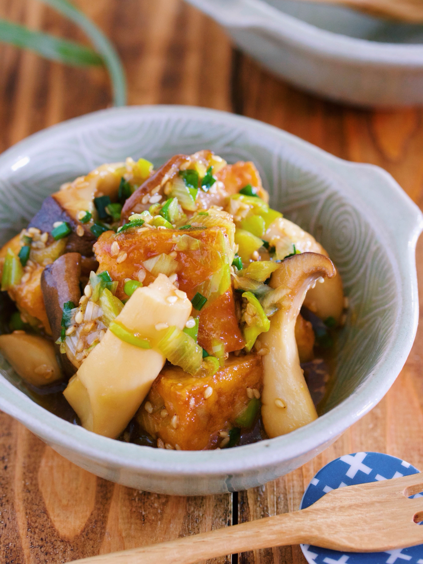 お鍋に入れて煮るだけ5分♪お財布にやさしい♪『厚揚げとチンゲンサイの上海風うま煮』と『厚揚げレシピまとめ』
