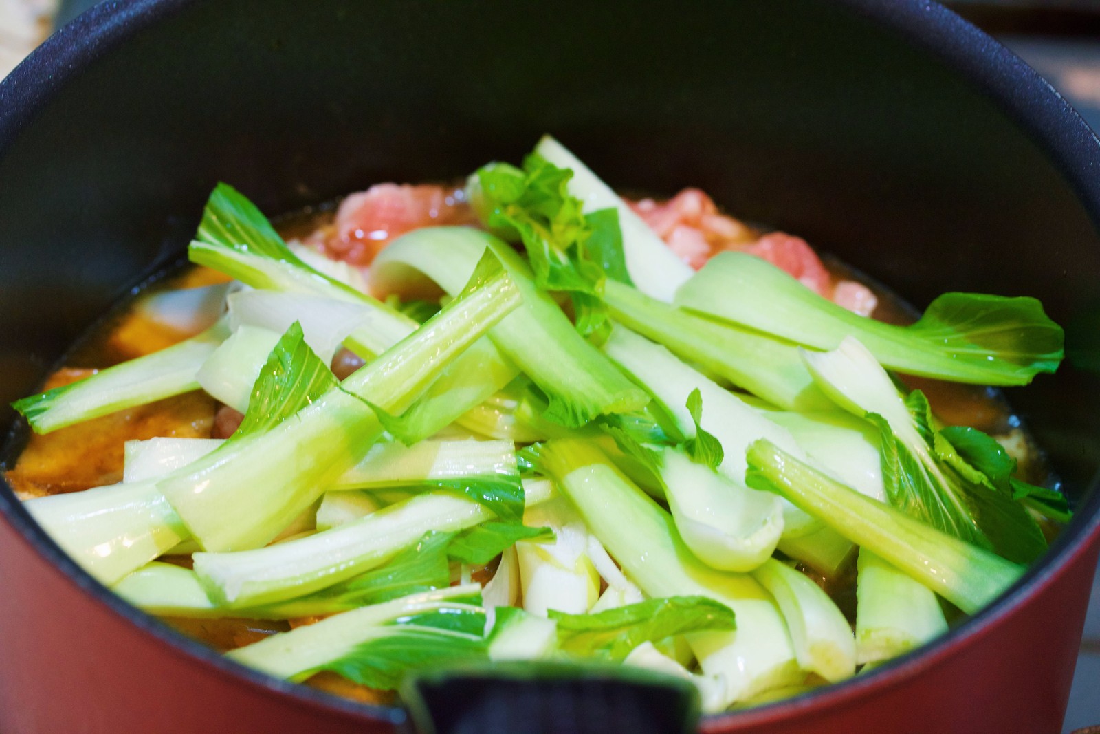 お鍋に材料を入れたらあとは、落とし蓋をして5分ほど煮るだけ♪作っている間は放置でOKなのでその間に副菜作りや洗いものができるのが嬉しい。ちなみに、味付けはオイスターソースがベースの上海風。 お肉もお豆腐もお野菜もたっぷりですので旨味も栄養も満点!その上、お財布にやさしくヘルシーで満足感もバッチリです( ´艸`)