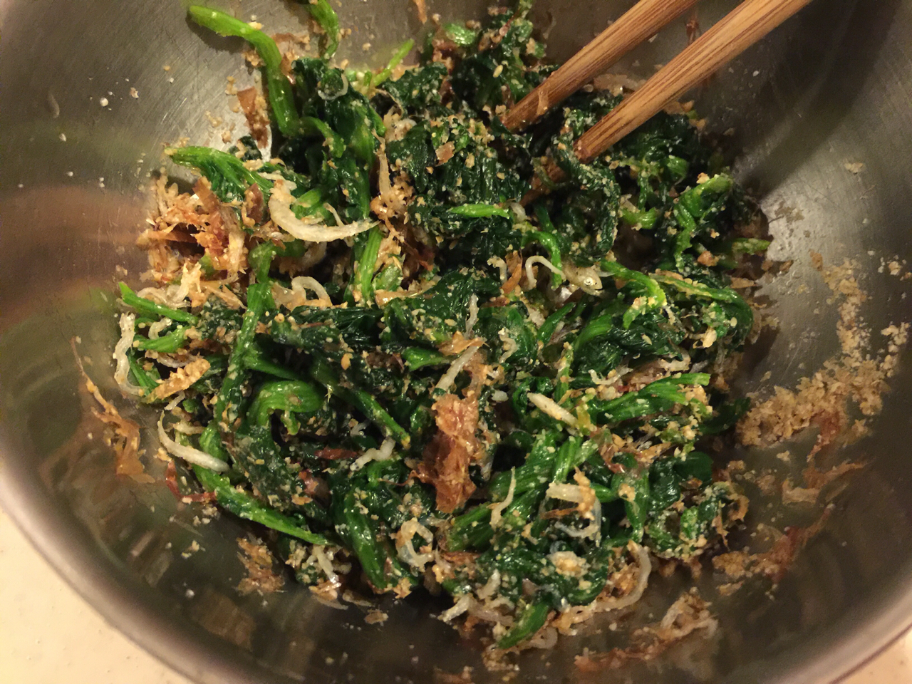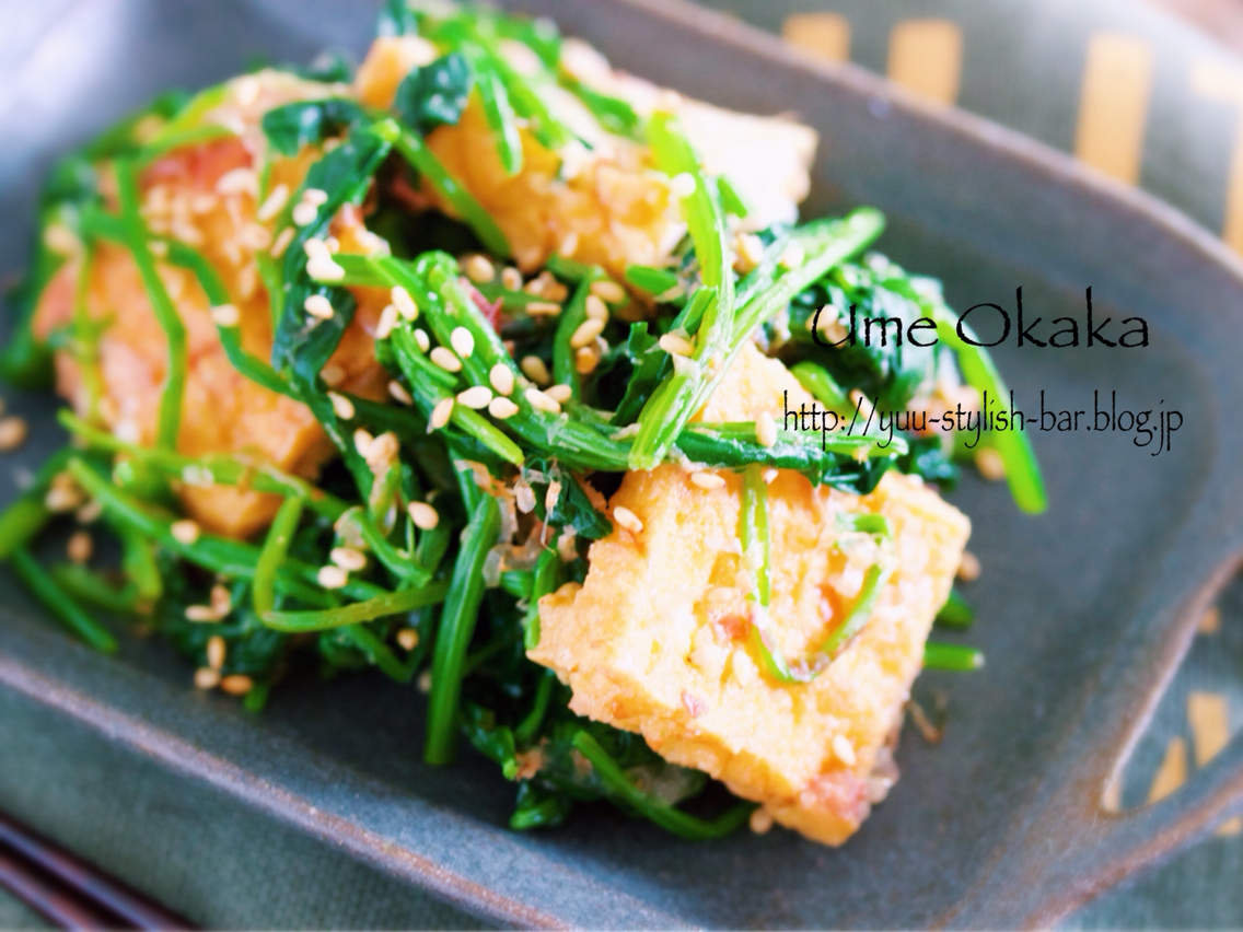 《厚揚げとほうれん草の梅おかかナムル》
