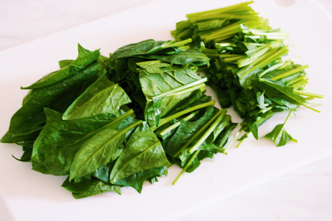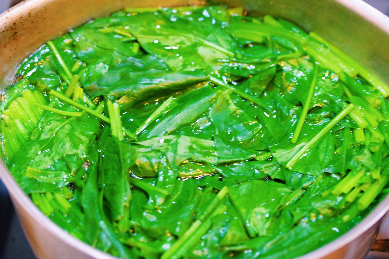 ゆでたほうれん草を