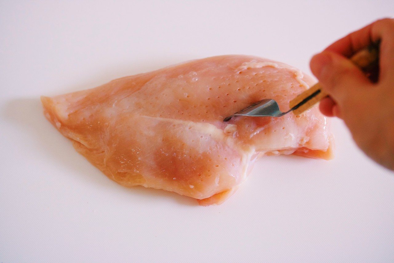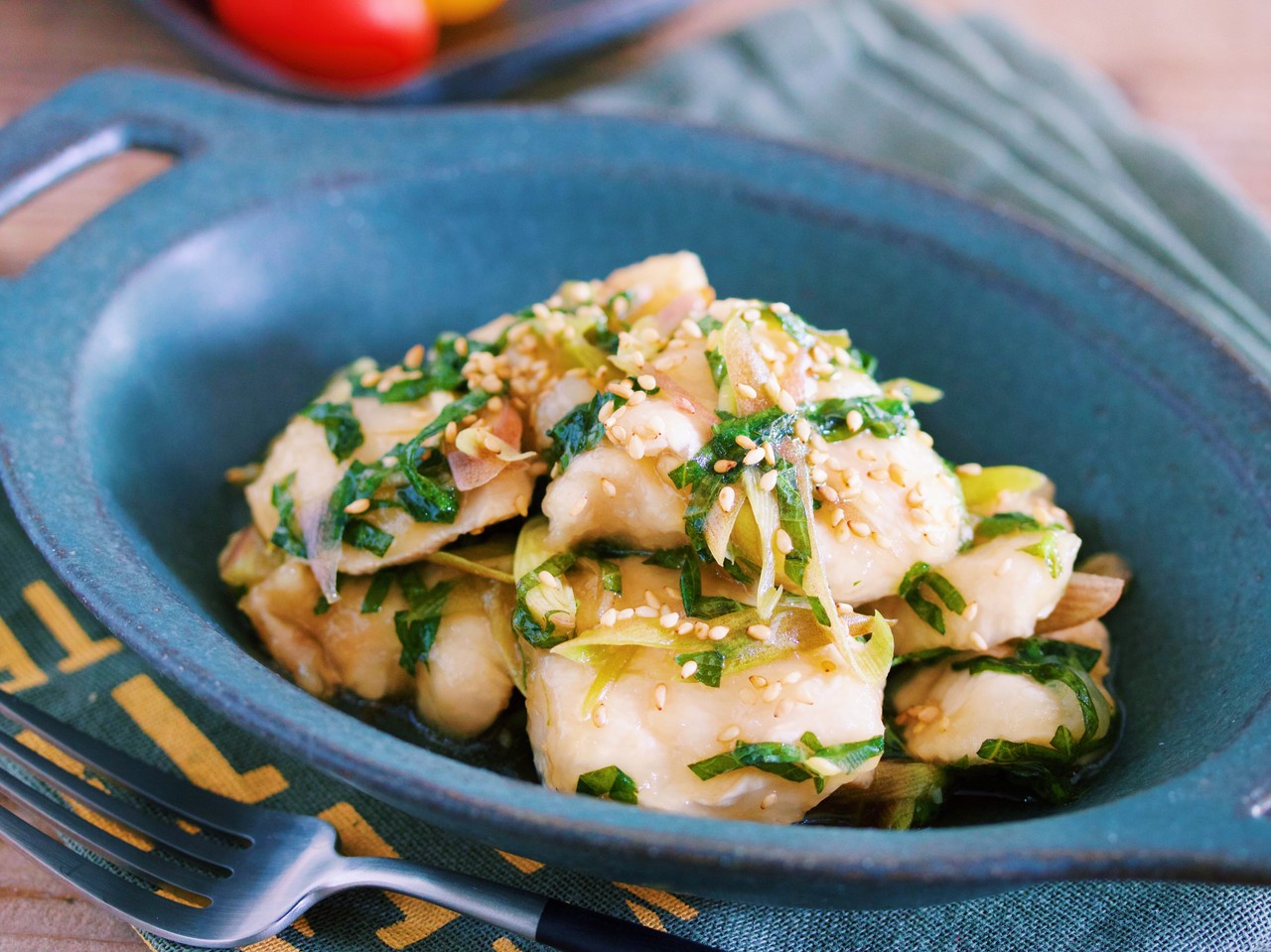 キッチンにある”あれ”が大活躍♪驚くほどのプルプル食感♪『むね肉とみょうがの大葉にんにくポン酢あえ』