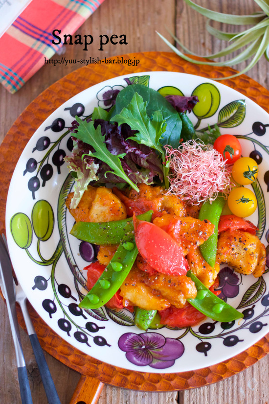 さて、本日2品目は、スナップエンドウを使った、簡単お手軽副菜♩