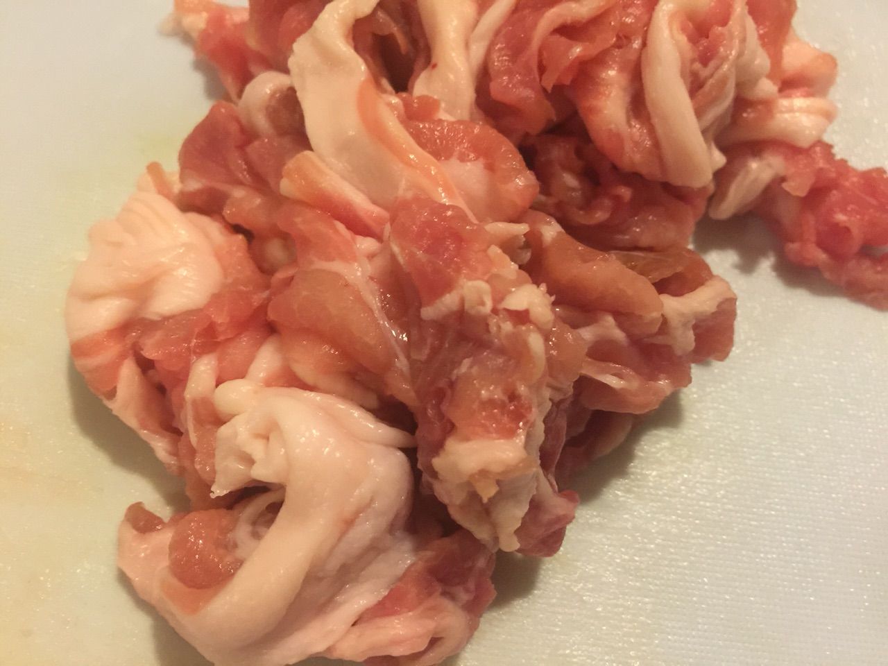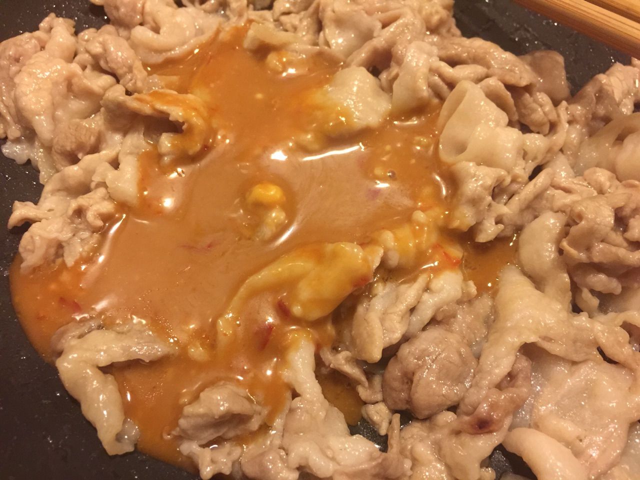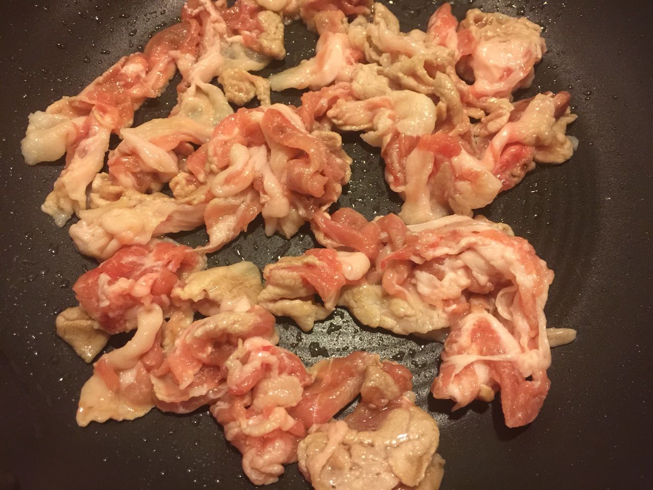 豚肉は強火で炒めると、フライパンにくっついたり固くなったりしますので、必ず弱火で炒めて下さい。