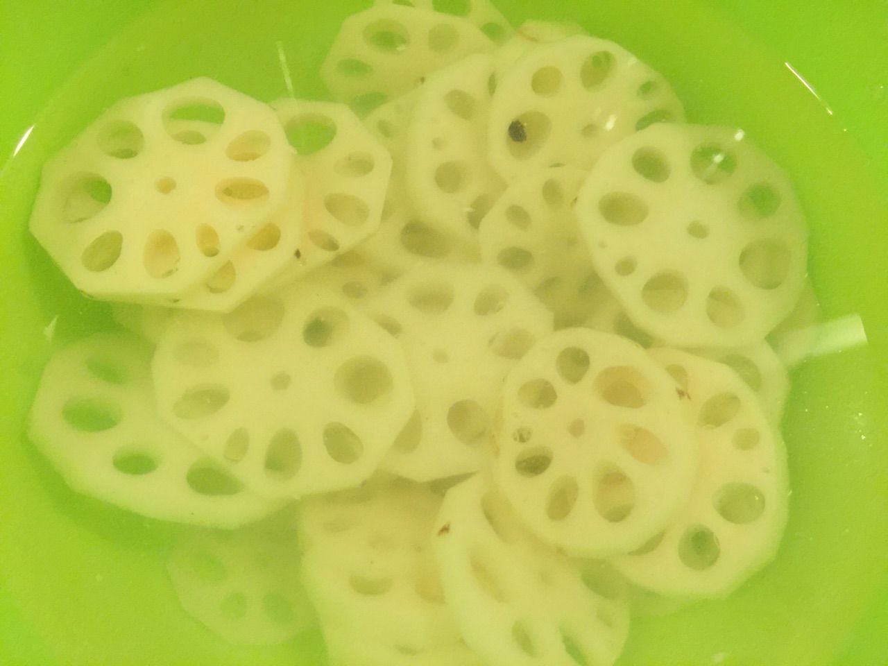 レンチンで蒸したレンコンに、牛肉とひじきで作った梅風味の具入りドレッシングをかけるだけ〜