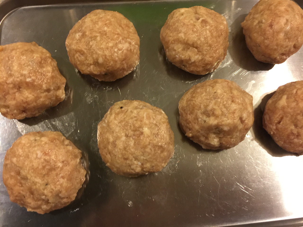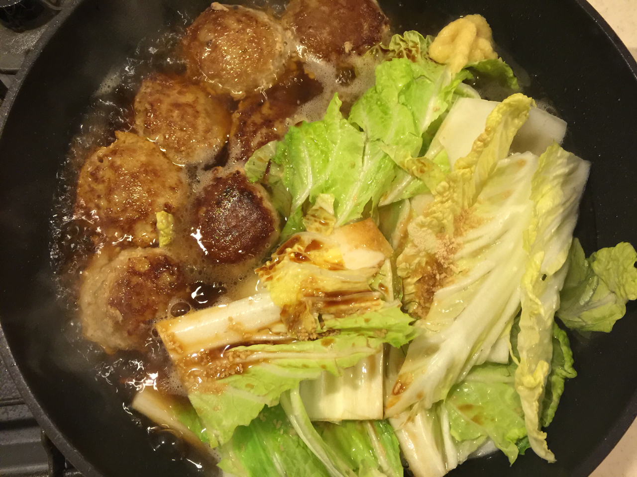 これを、自然解凍させて丸めて焼いて、あとは白菜と一緒にコトコト煮込むだけ〜♪
