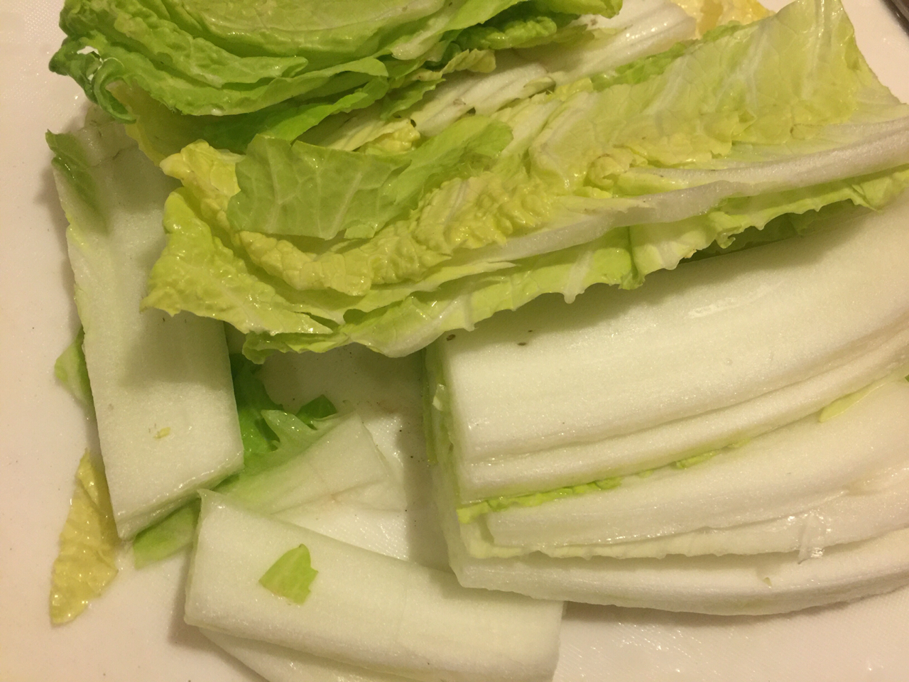 作業はタネを丸めるのと、白菜を切ることだけです!