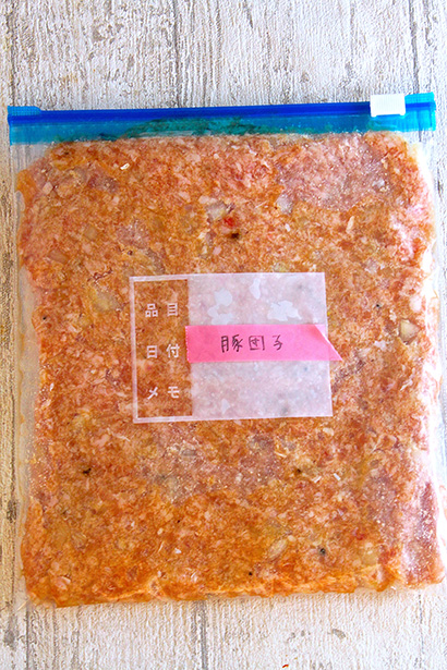 これは、丸めて焼いてから保存しててもよかったのですが、うちの冷蔵庫にスペースがなかったため、下味だけつけて冷凍保存していました♪