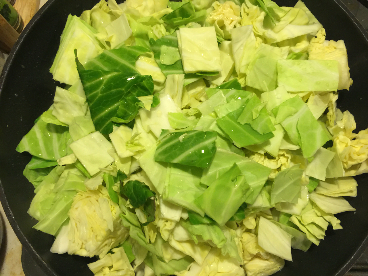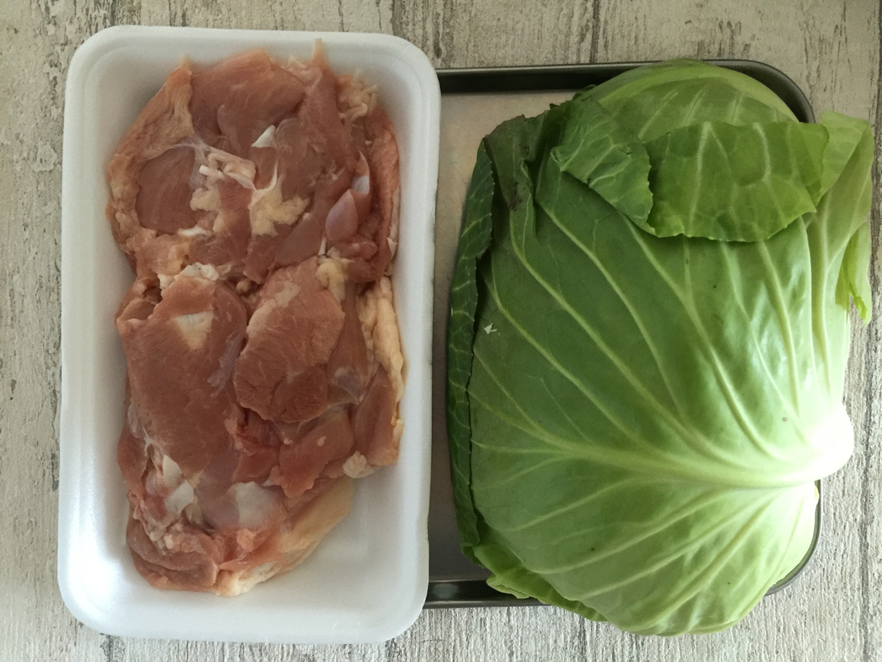 フライパンで鶏肉を炒めて、あとはキャベツを入れて蒸し焼きに♪