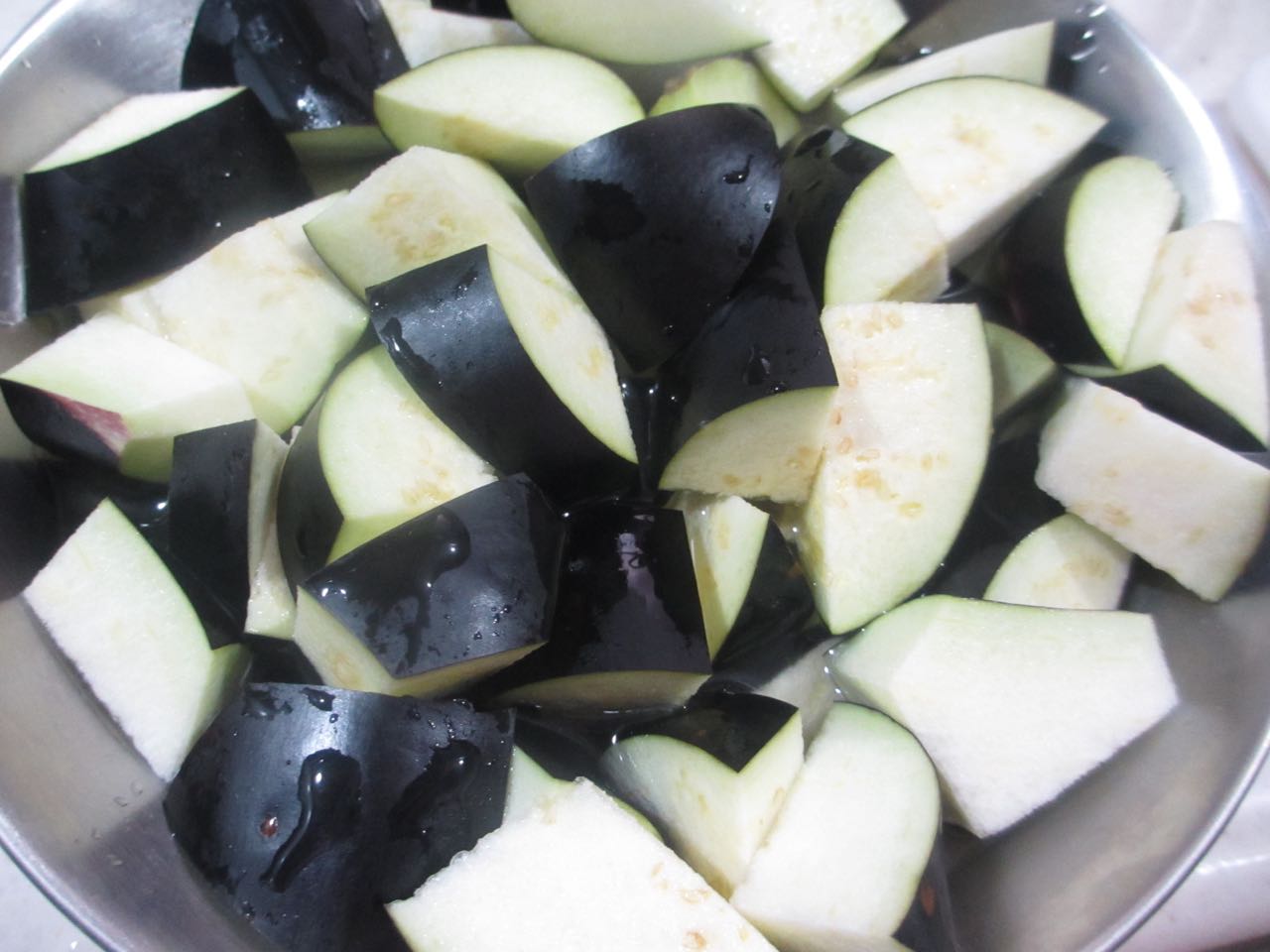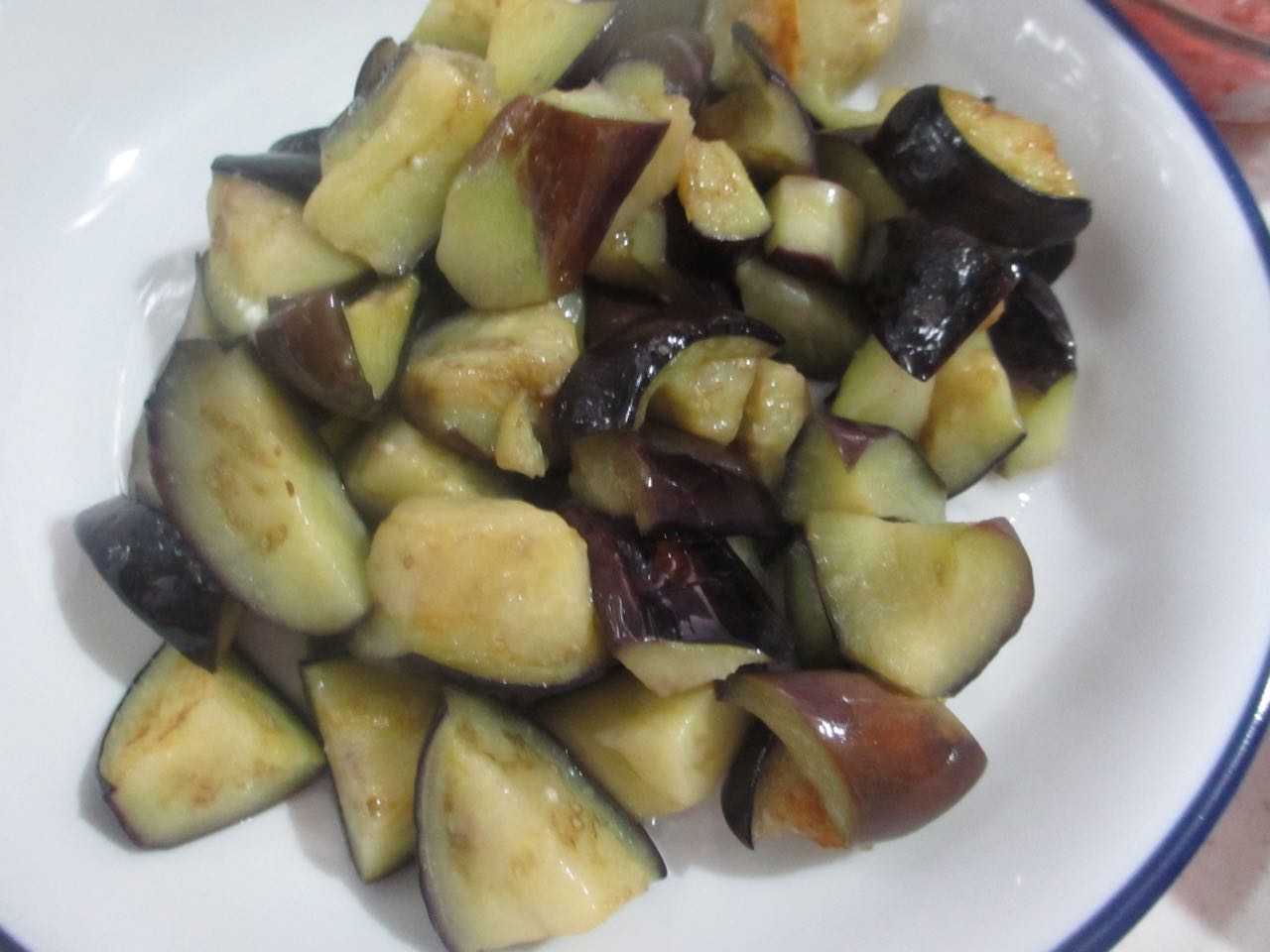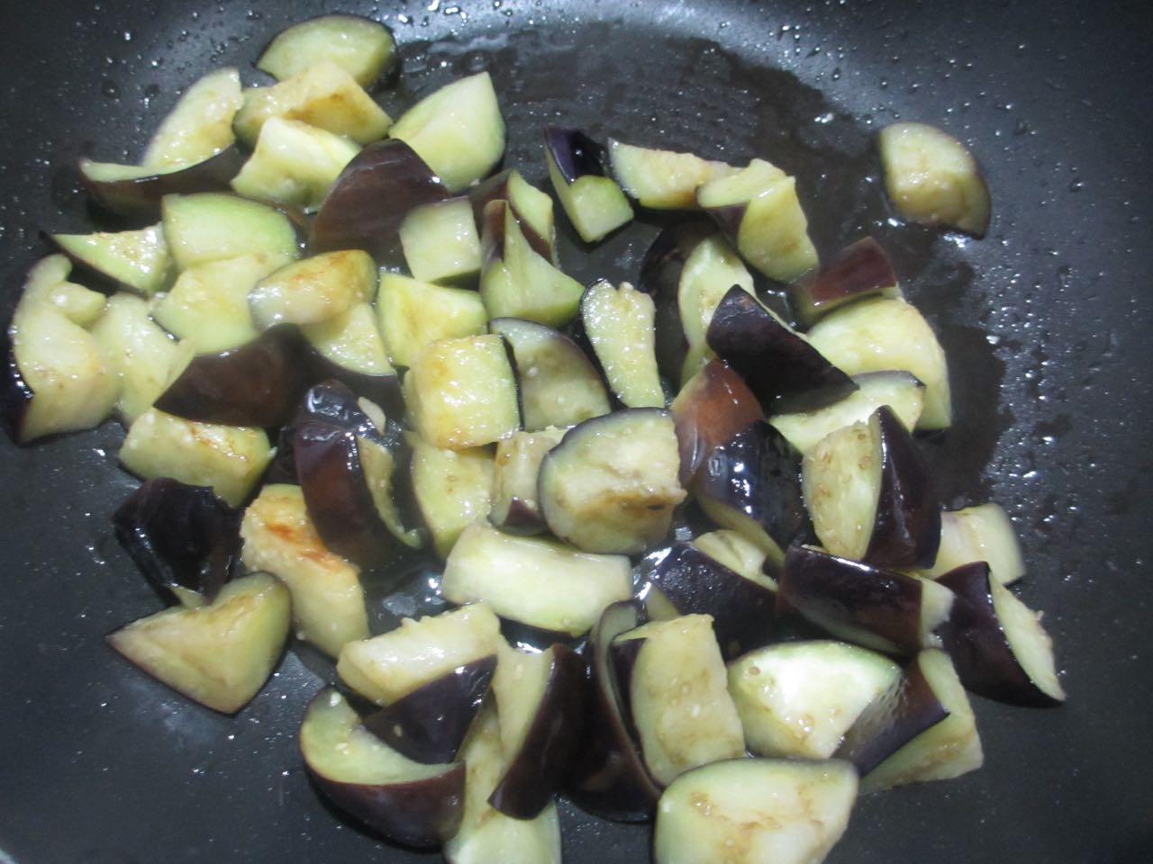 肉味噌にナスを加えて