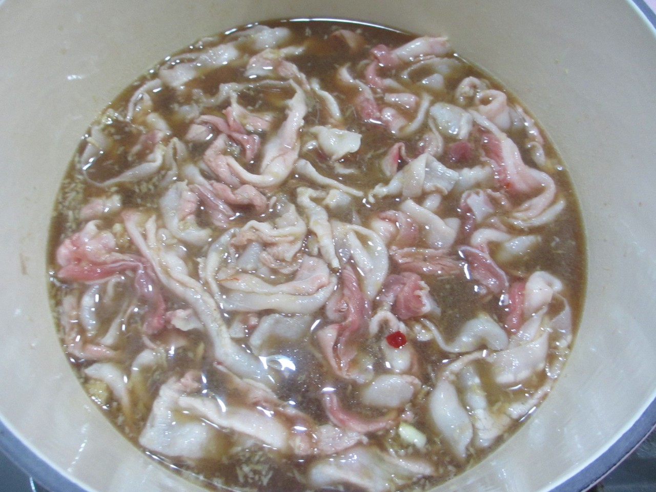 《博多名物♡醤油味のもつ鍋ならぬ豚バラ鍋》