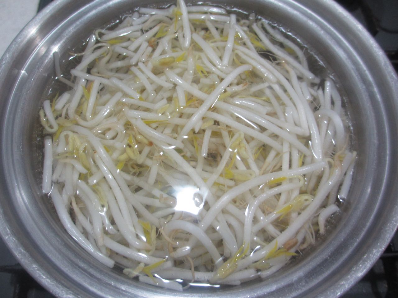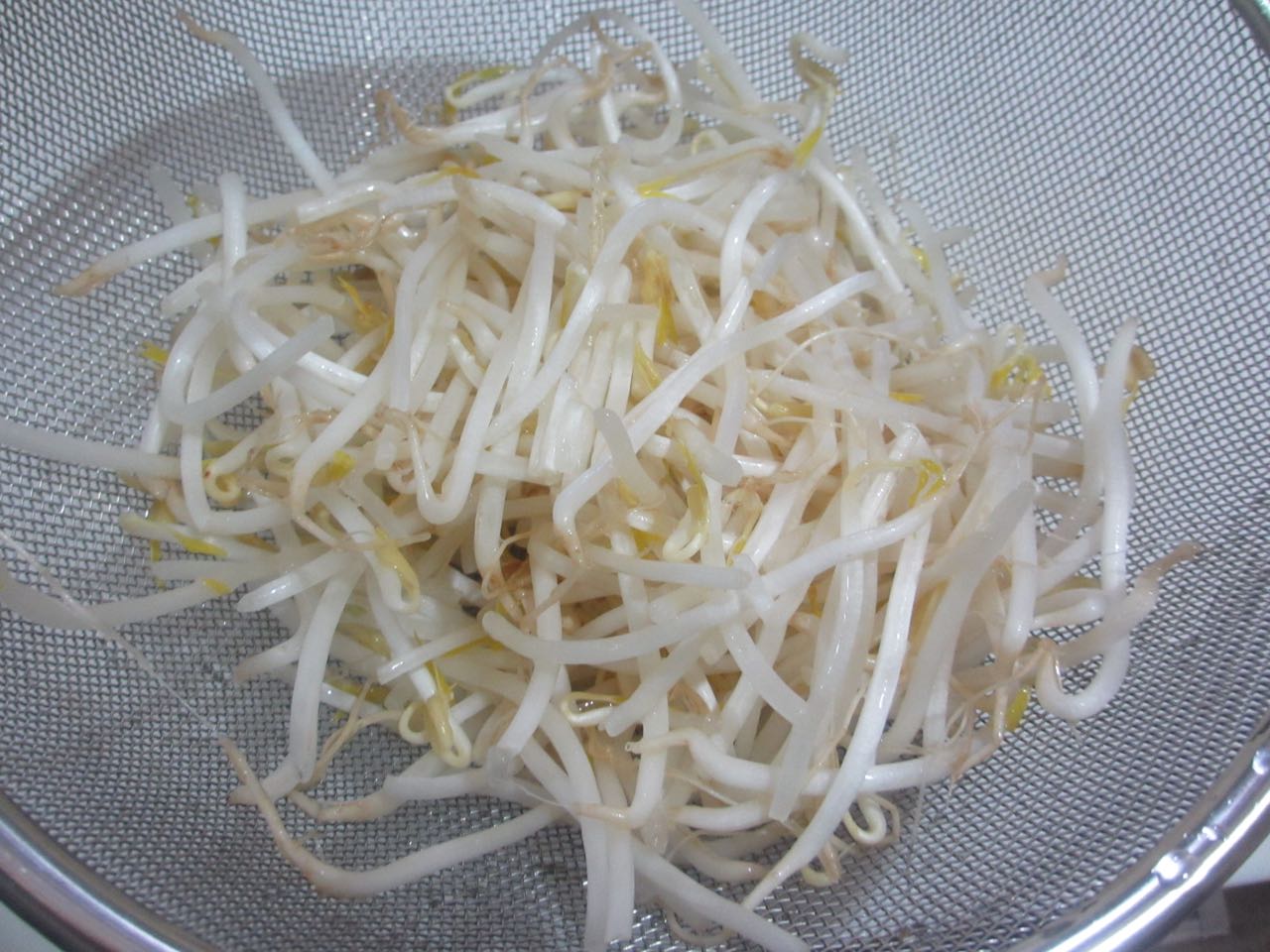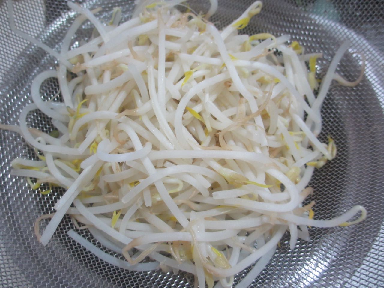 もやしのひげ根は、気になる方は取り除いて下さい。また、酢少々が入ったお湯で茹でると臭みが取り除けます。