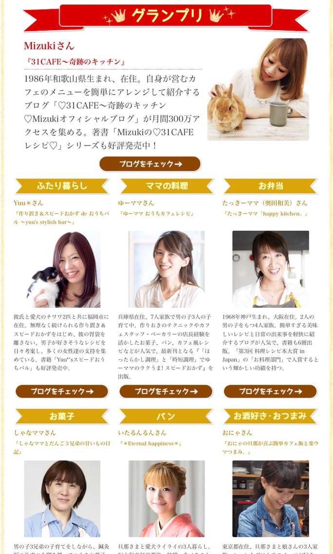 レシピ部門&ブログ部門の詳細は