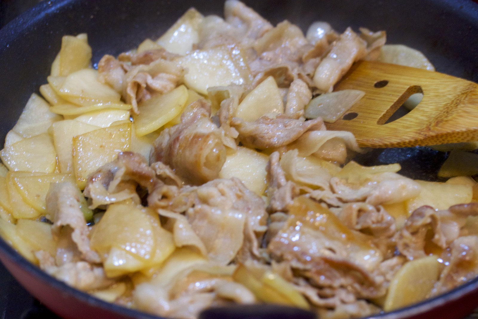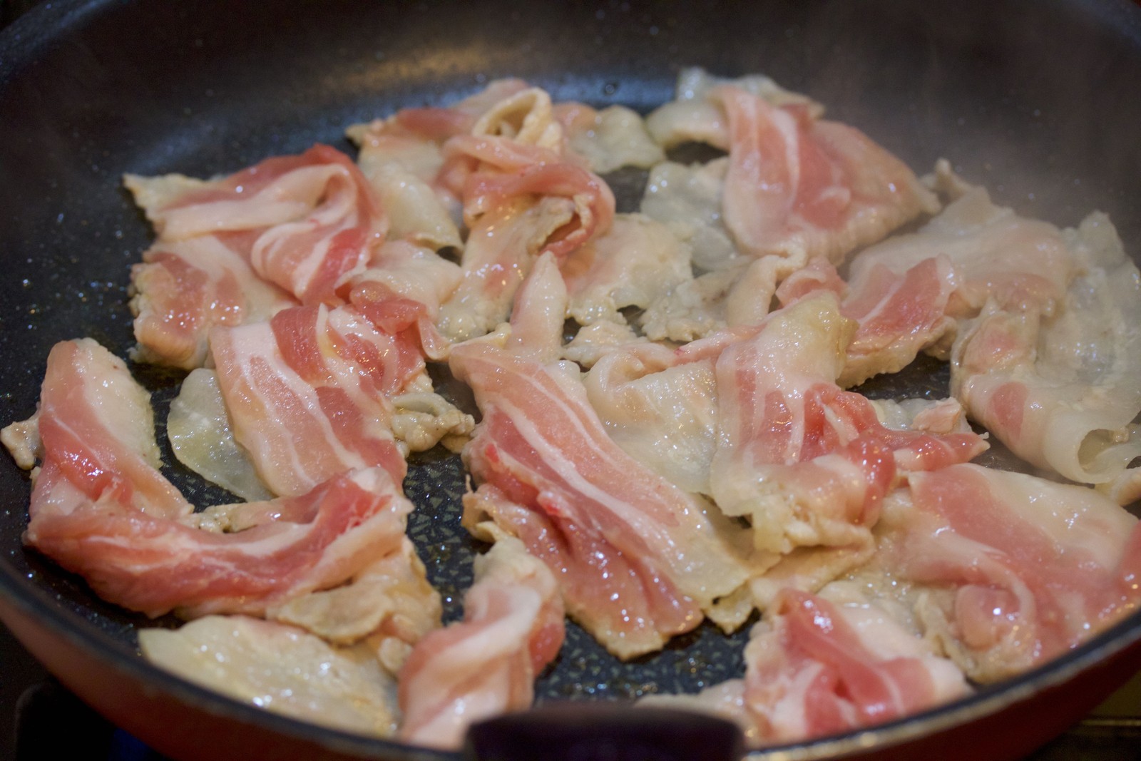 フライパンで、豚バラと