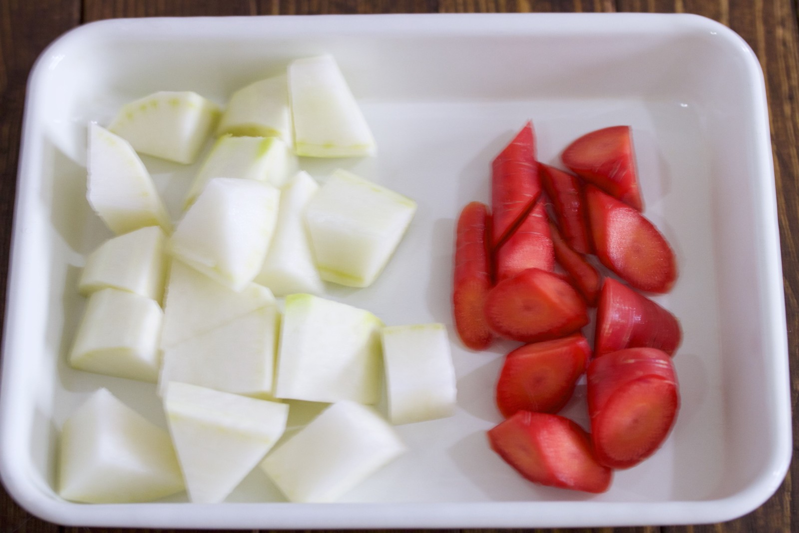 にんじんは、彩りのために加えました。なければ省いてもOKです。その場合、大根の量を増やしてください♪