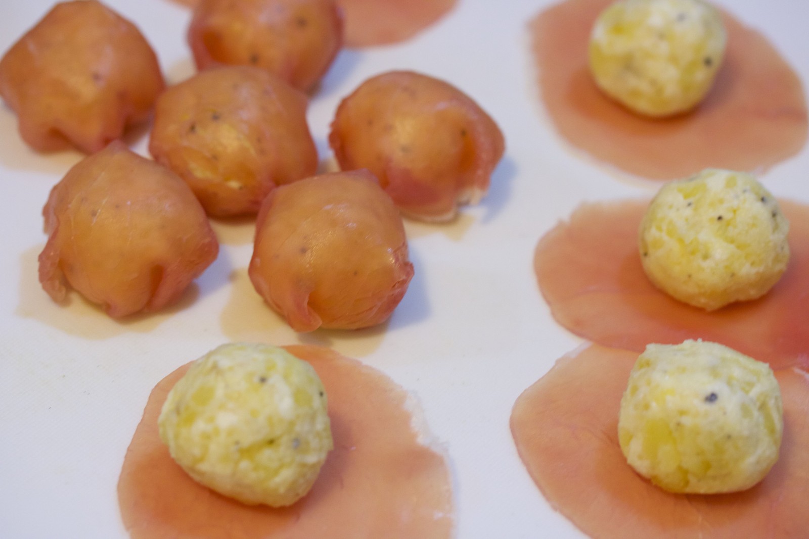 あとは、生ハムで巻くだけ。